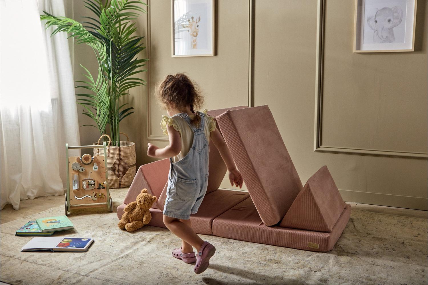 Crafted with premium cord fabric in a charming pink shade, this kids sofa is as soft as it is durable, blending seamlessly into any modern Irish home. The modular design features four generously sized pads that can be folded, stacked, or arranged in countless ways, allowing children to build forts, castles, slides, tunnels, or simply lounge in comfort. The supportive foam construction ensures safety for climbing and robust play, while the removable, washable covers make cleaning up after playtime a breeze—perfect for busy Irish households.