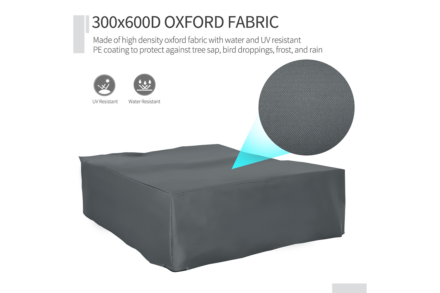 • PE coated oxford fabric is water & UV resistant, helping to protect your furniture