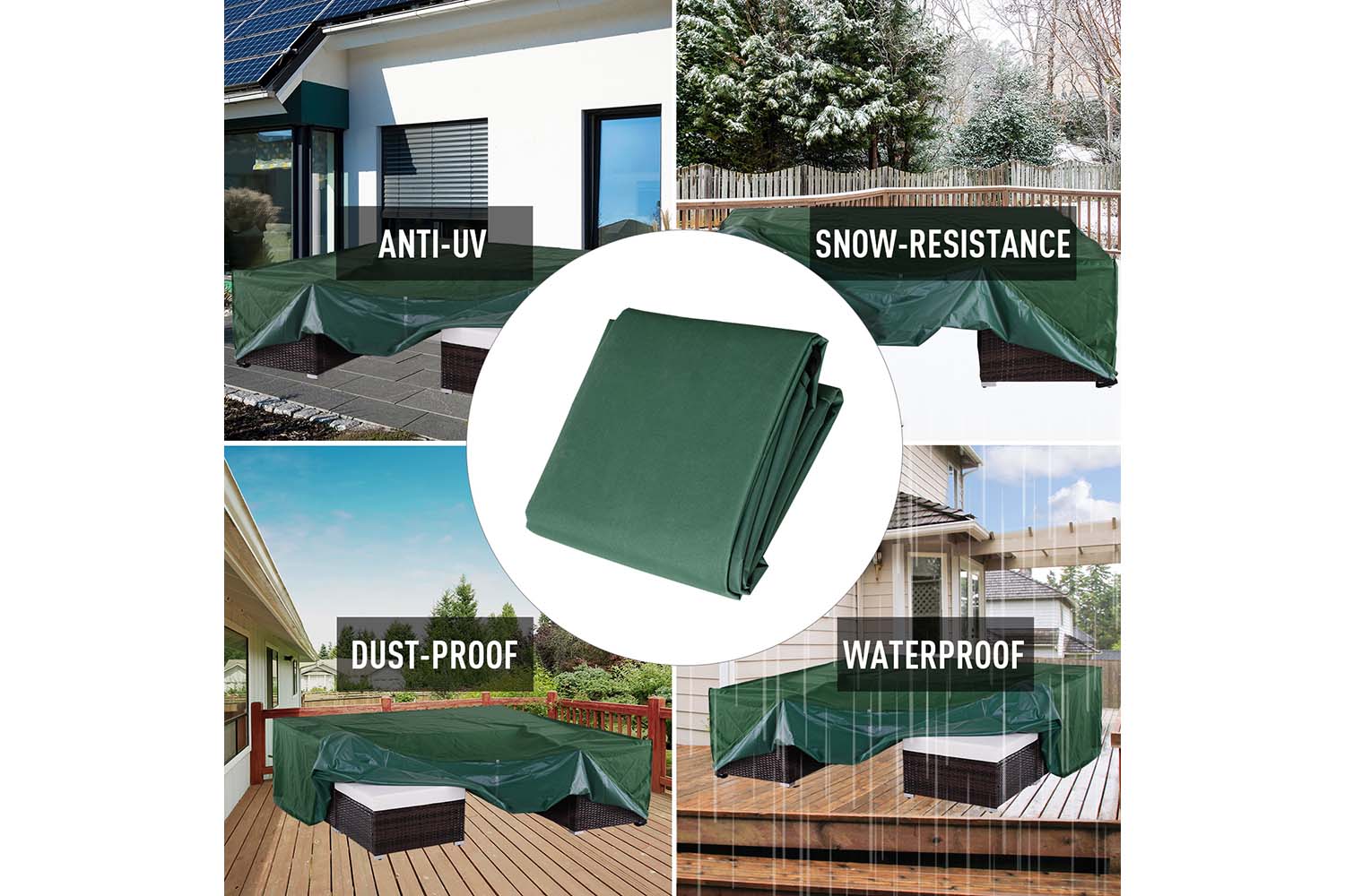 The UV rain protective furniture cover from Outsunny provides high-quality protection to your garden patio furniture, saving you the trouble of moving and hiding the furniture when the inclement weahter threats. The cover protects your furniture from rain, snow, frost and the sun. Add the functional cover which is suitable for indoor and outdoor furniture. And it is easy to fold and store away when not in use. A great helper to protect your desks, benches, tables, closets and more.
