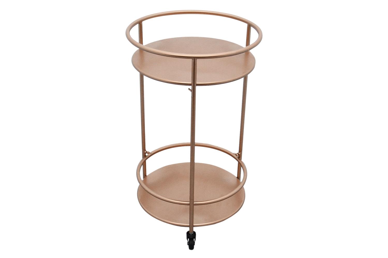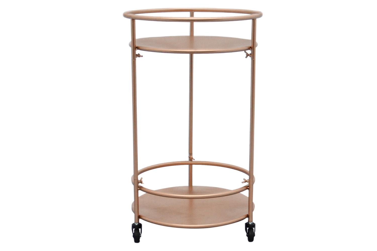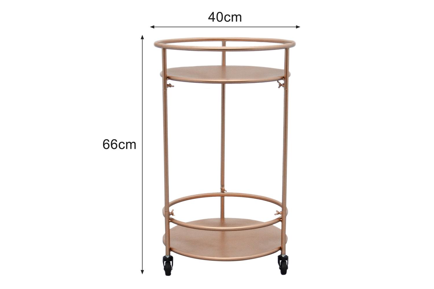 small, art deco inspired serving trolleythe 2 shelves allow you to transport plenty of drinks at oncemove your trolley around easily with the 3 sturdy caster wheelsthe painted iron frame gives a beautiful metallic rose gold finish