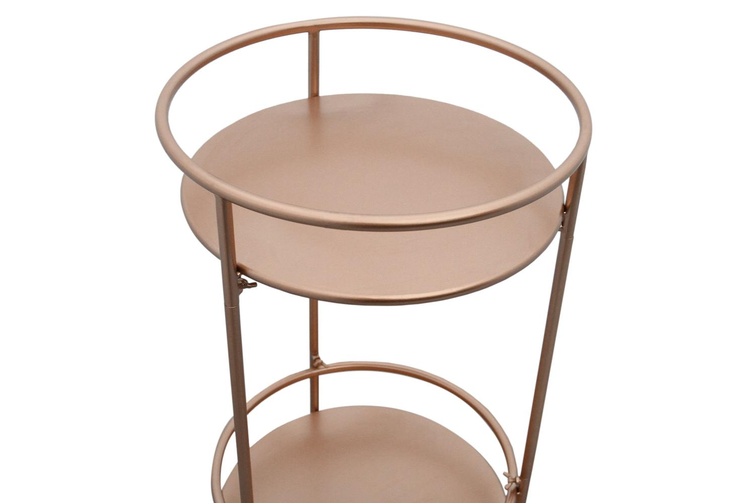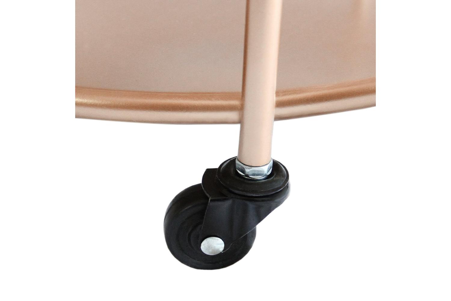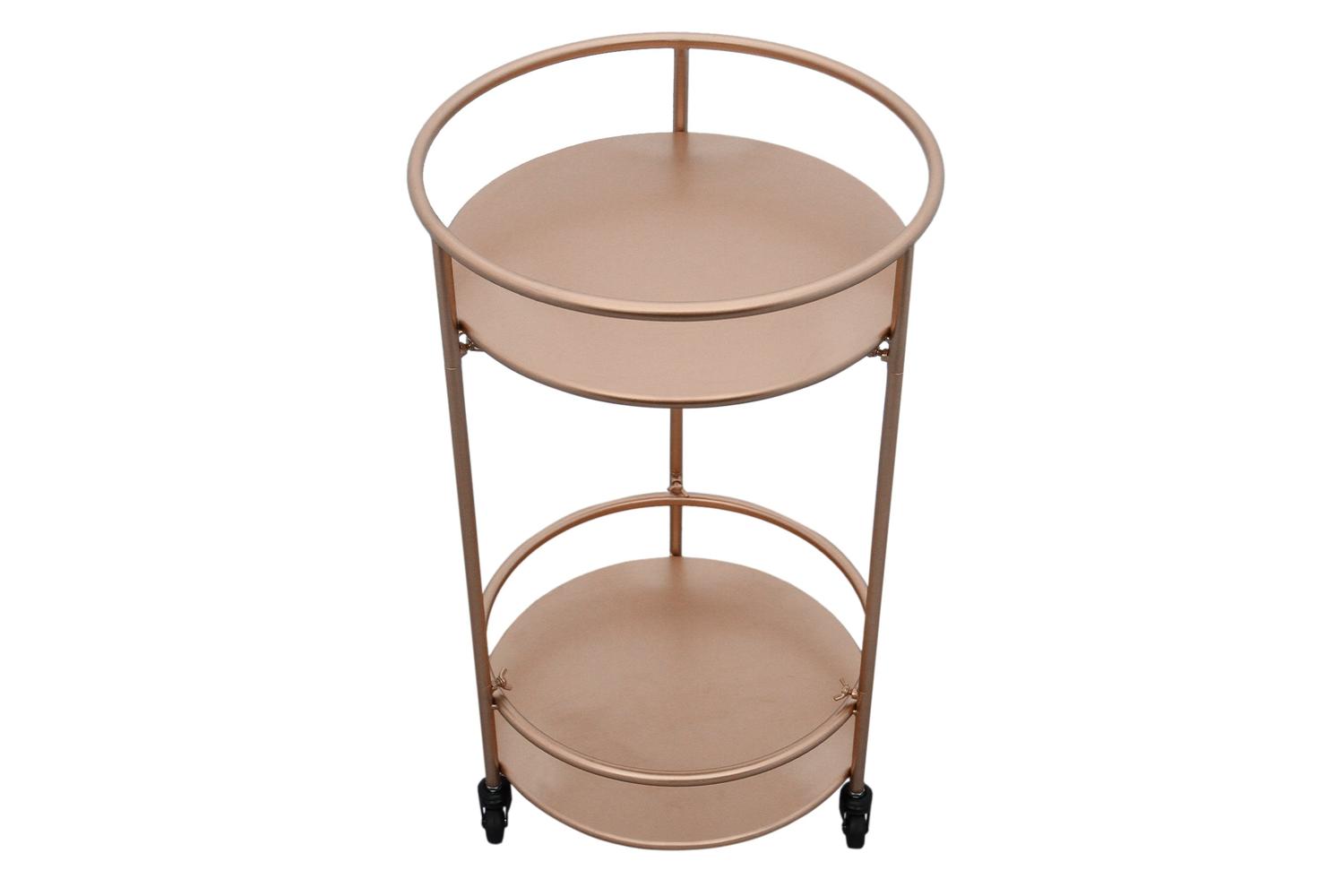 small, art deco inspired serving trolleythe 2 shelves allow you to transport plenty of drinks at oncemove your trolley around easily with the 3 sturdy caster wheelsthe painted iron frame gives a beautiful metallic rose gold finish