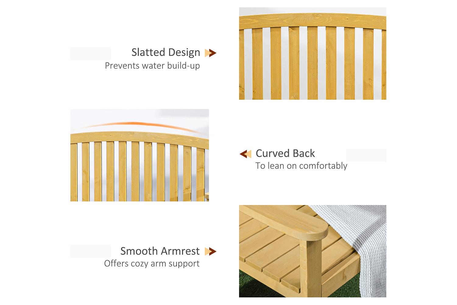 Bring understated beauty into your garden and beyond, with this Outsunny bench. Made from fir wood, it is crafted into a spacious two-seater design, ensuring there is plenty of room to sit with company. The slatted back and seat prevents water building up, with a tall back and fixed armrests for support. Finished with a lick of protective varnish. Enhanced comfort? Choose an Outsunny cushioned seat.