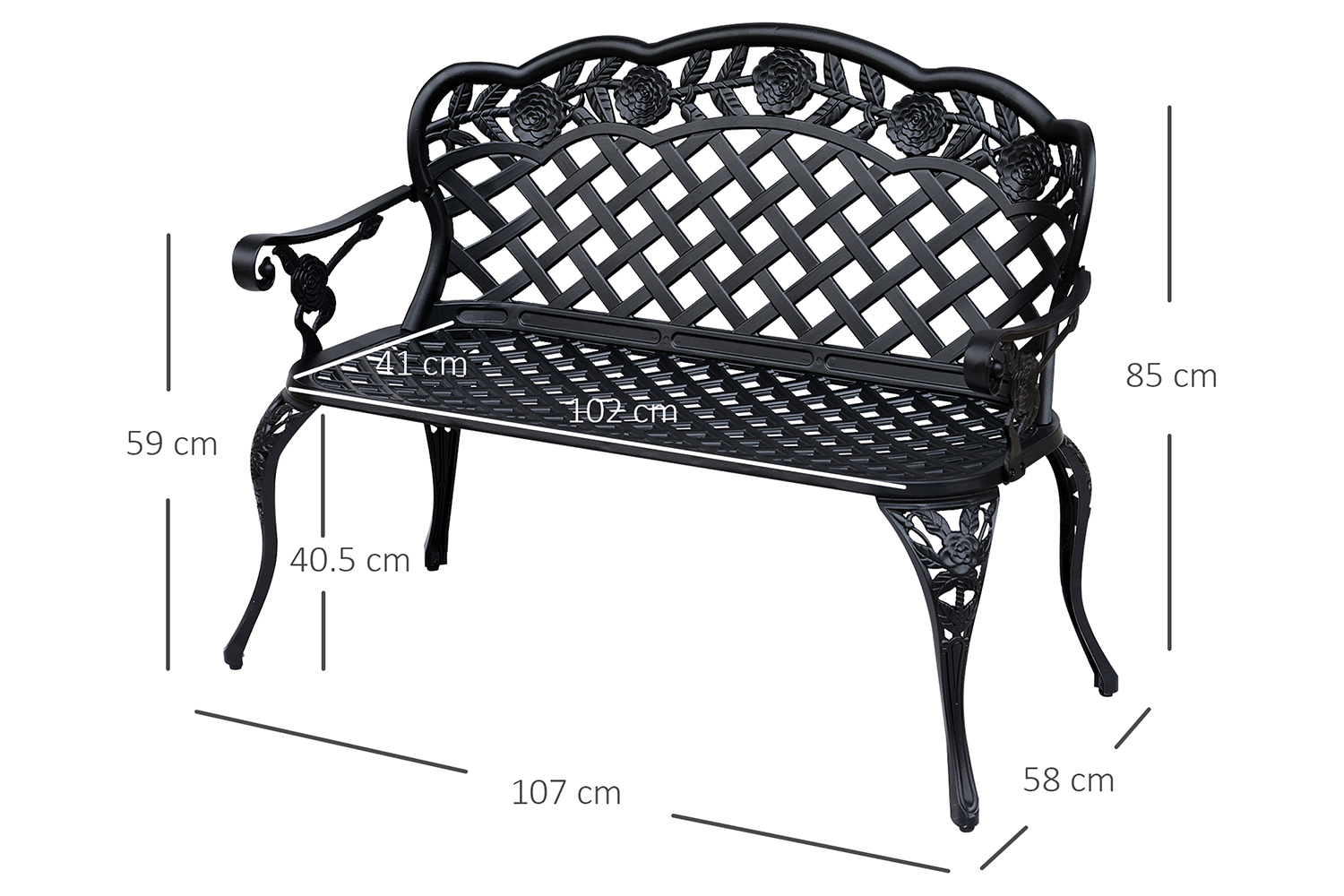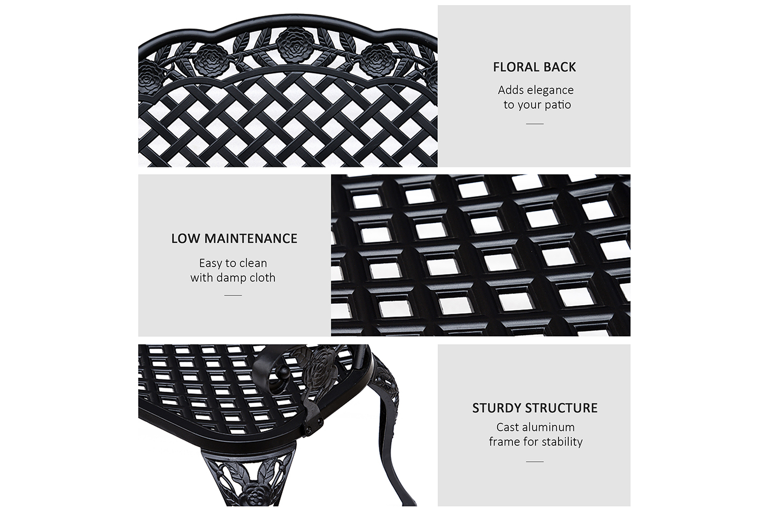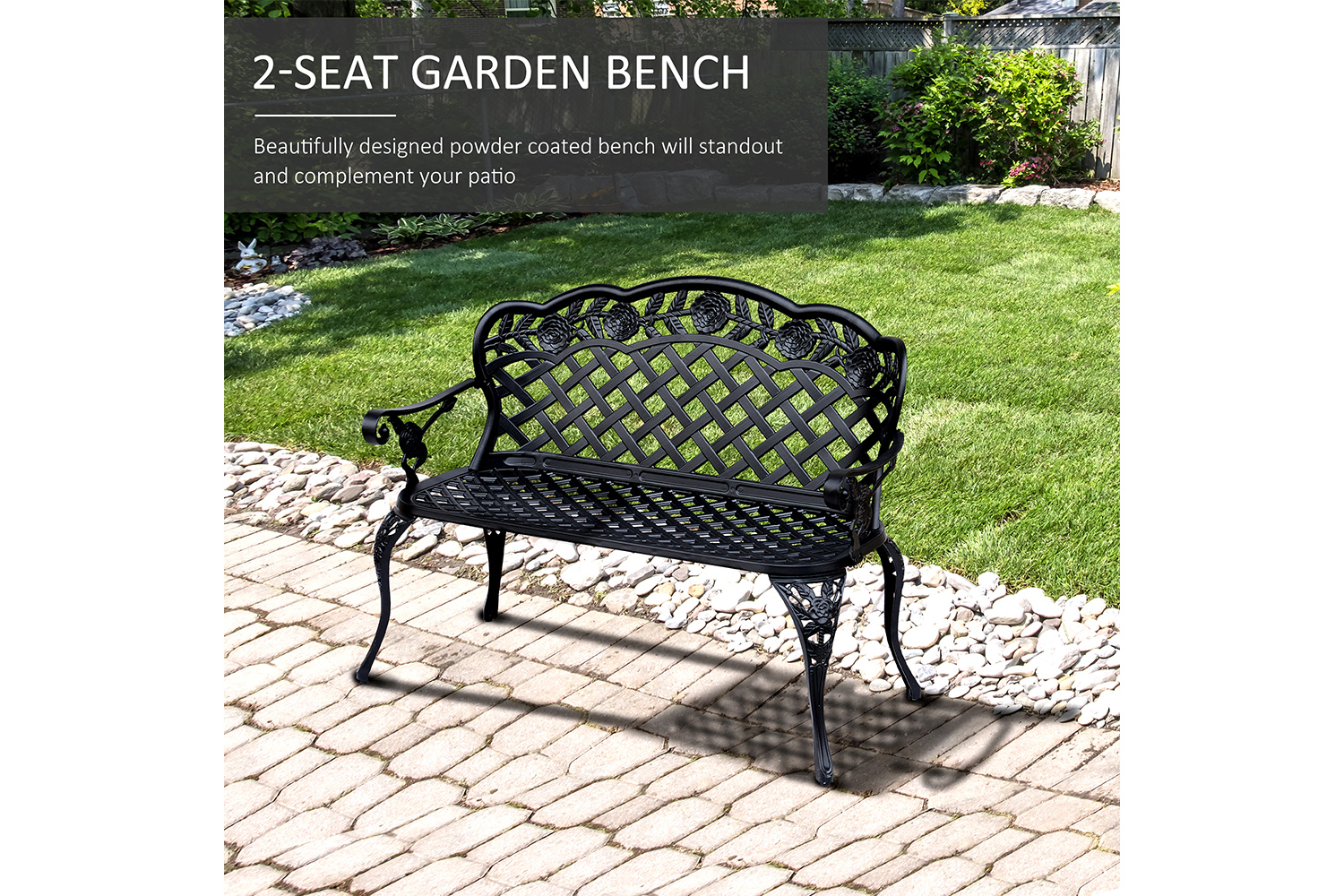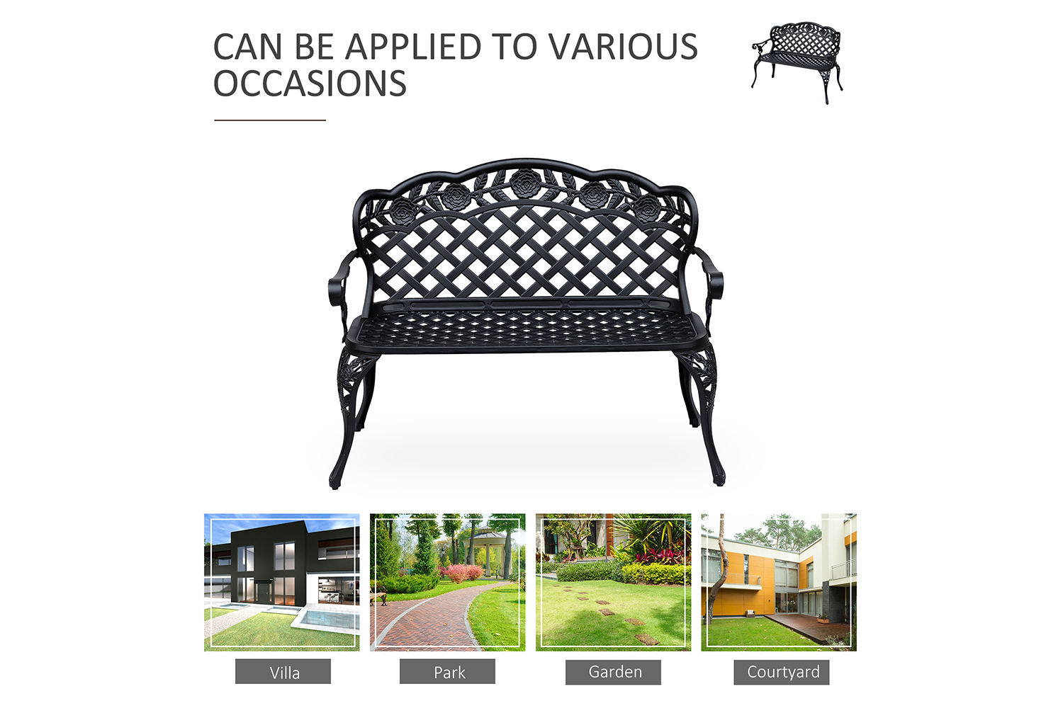 Make your garden or path complete with an Outsunny antique style bench to sit and rest on while enjoying the great outdoors. Made from cast aluminium this bench is sturdy yet comfortable enough to relax on. The seat is composed of cast aluminium to provide optimal support. The black powder-coated aluminium color gives the bench an antique look that will fit perfectly with any outdoor décor and allow it to maintain its stylish look. Add a touch of style to your backyard or garden with this beautiful Outsunny bench.