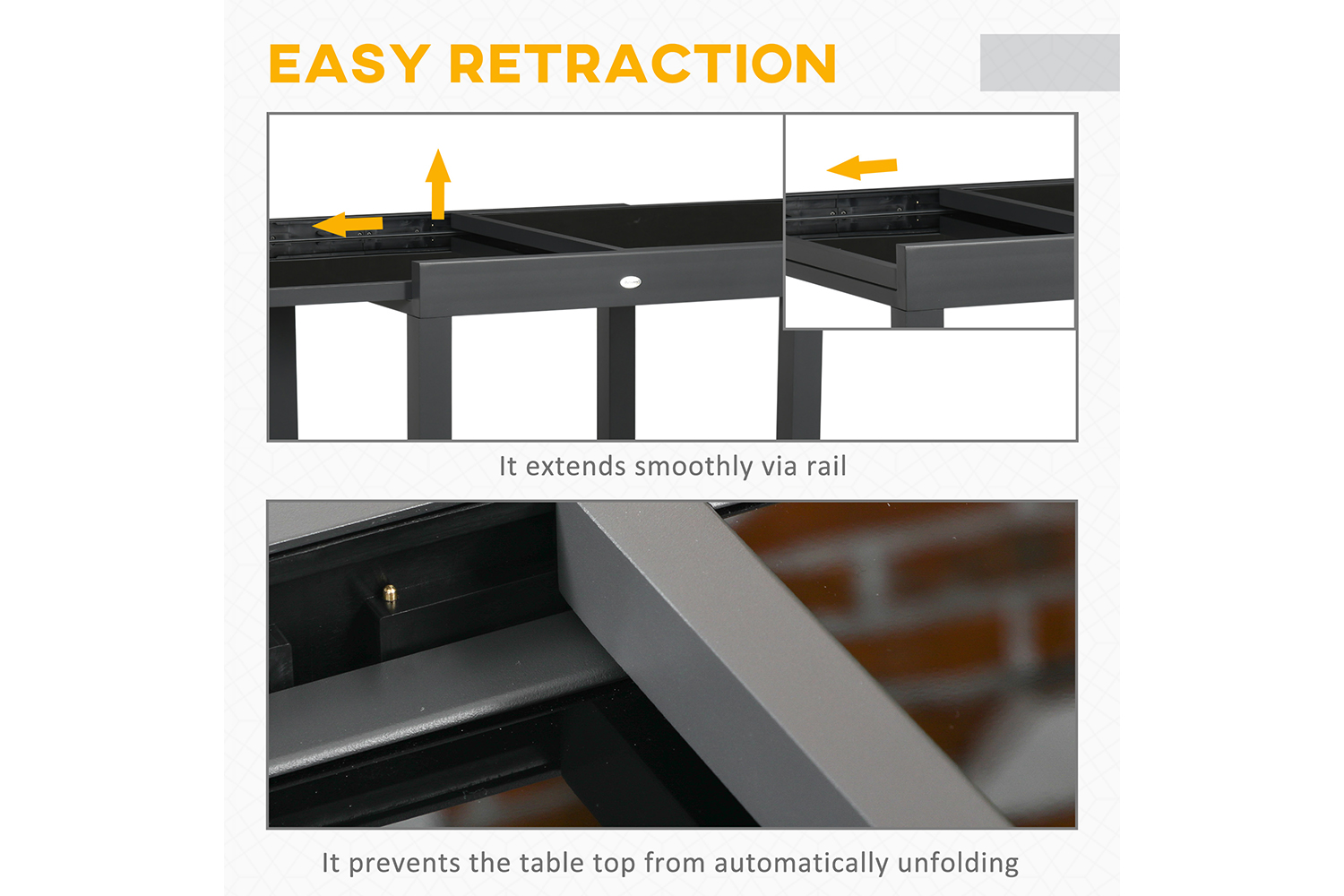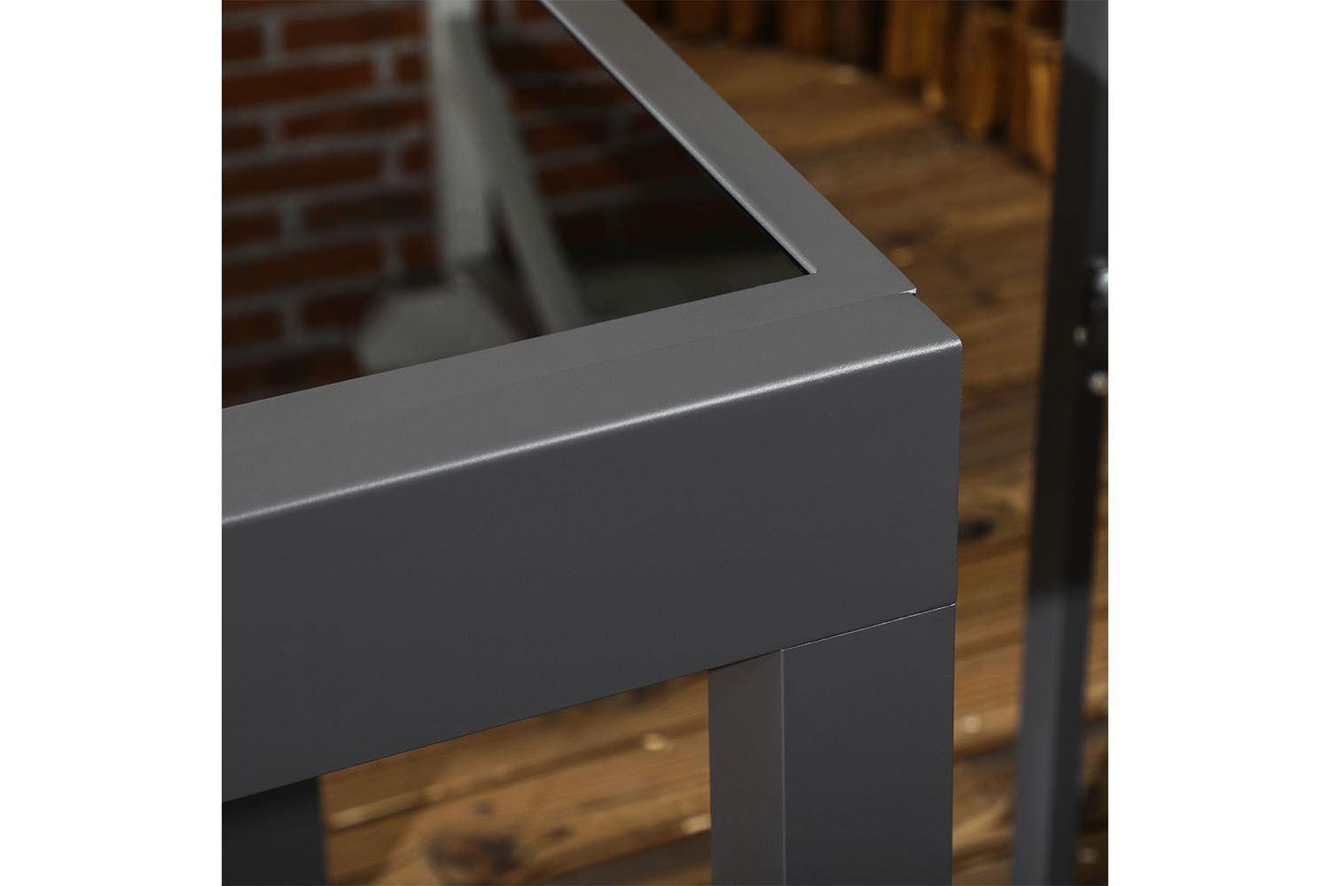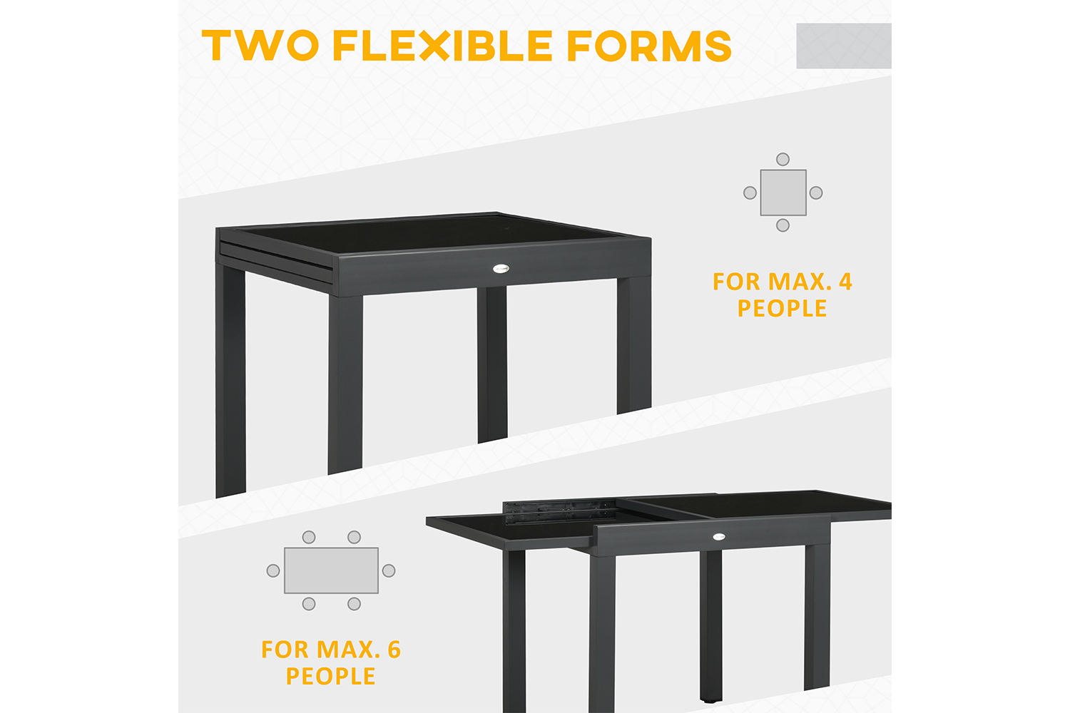 Want a place to put on backyard barbecues and cosy campfires? Like to read in the breeze? Need a table? Outsunny has a patio dining table to help you put on the picnic of your dreams. The sturdy aluminium frame with quality tempered glass table top is stable and easy to maintain. Also add enduring beauty, style, and grace to your environment with this essential part of any outdoor living space like the backyard, front yard, balcony, garden, or deck. Put some party into your patio with Outsunny.