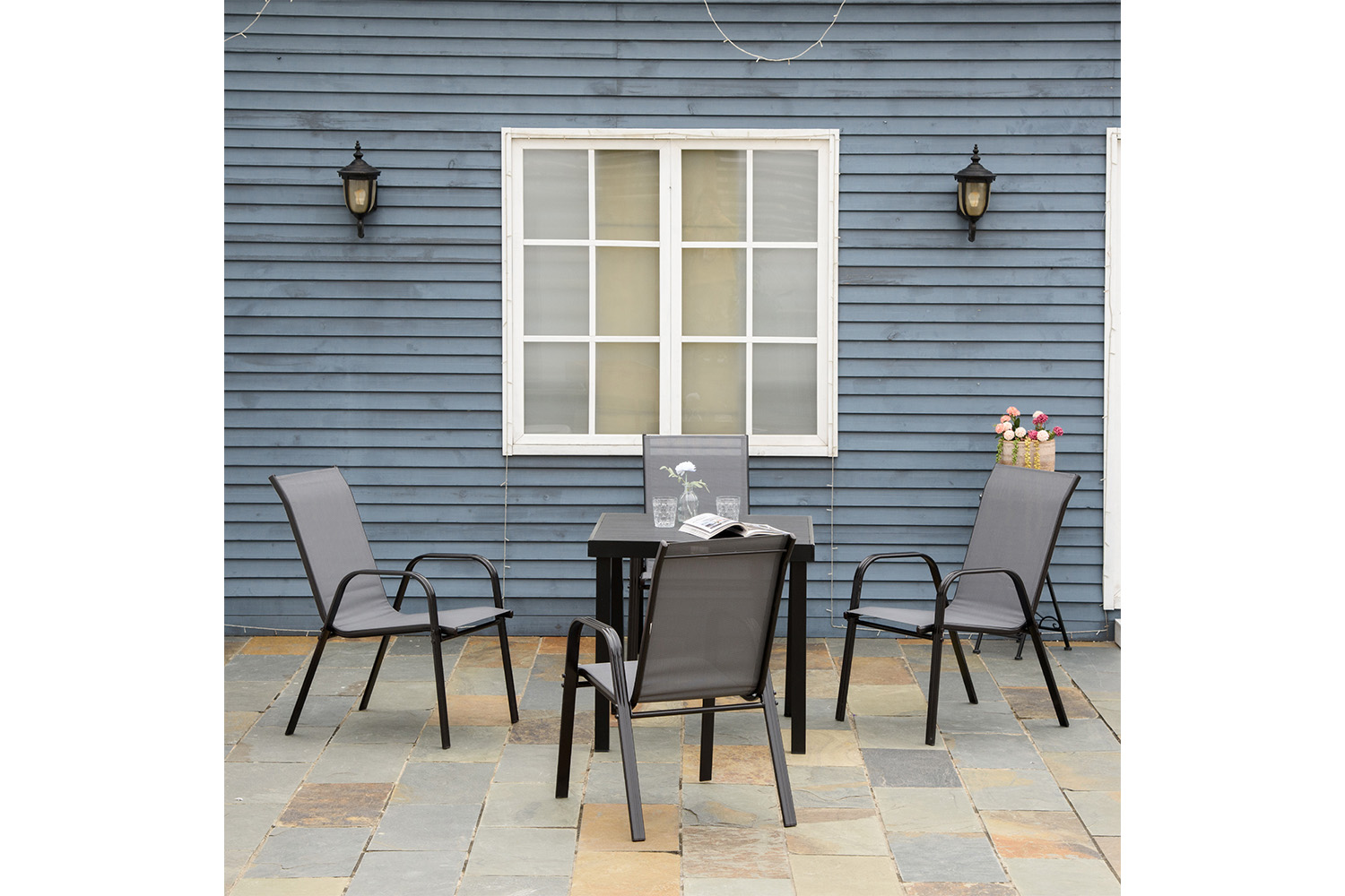 Sit outdoors with friends, thanks this Outsunny set of four stackable gardens. The high back and armrests support your body. The breathable mesh fabric is comfortable. The stackable design makes it compact for easy storage. A set to bring your favourite people together outdoors.