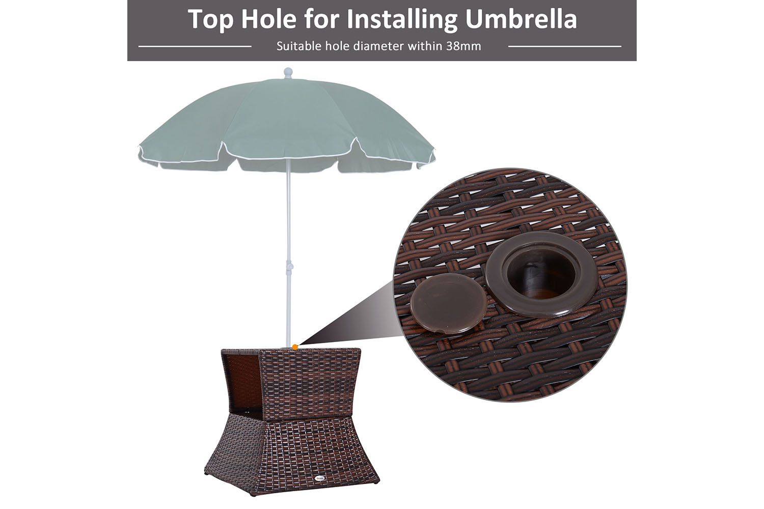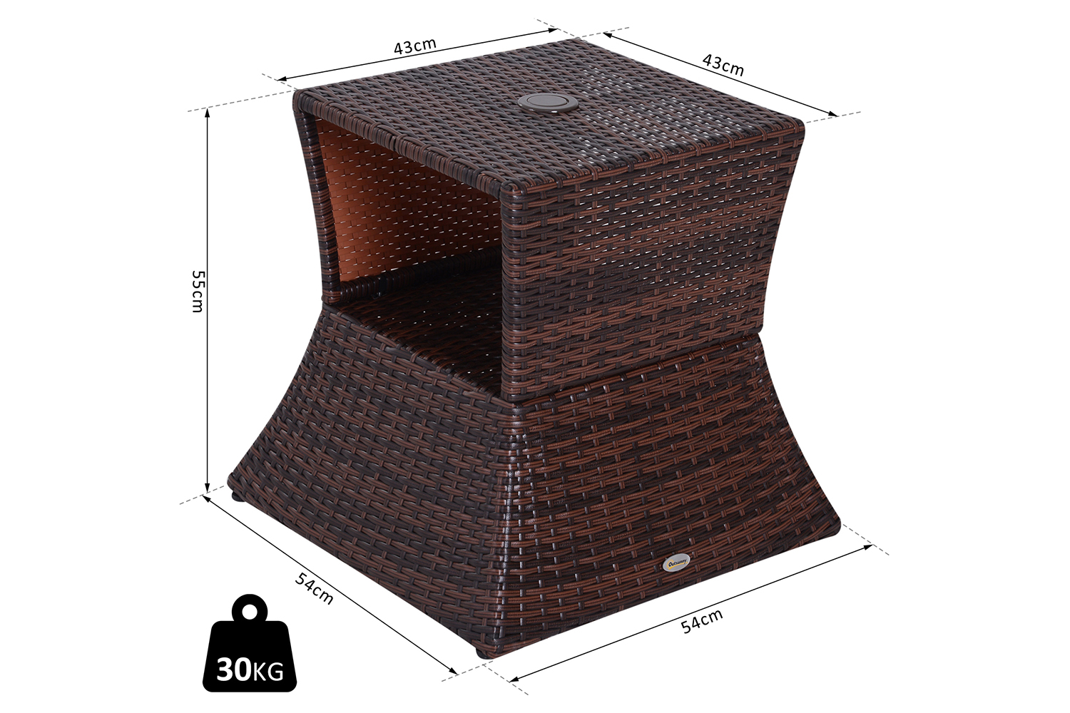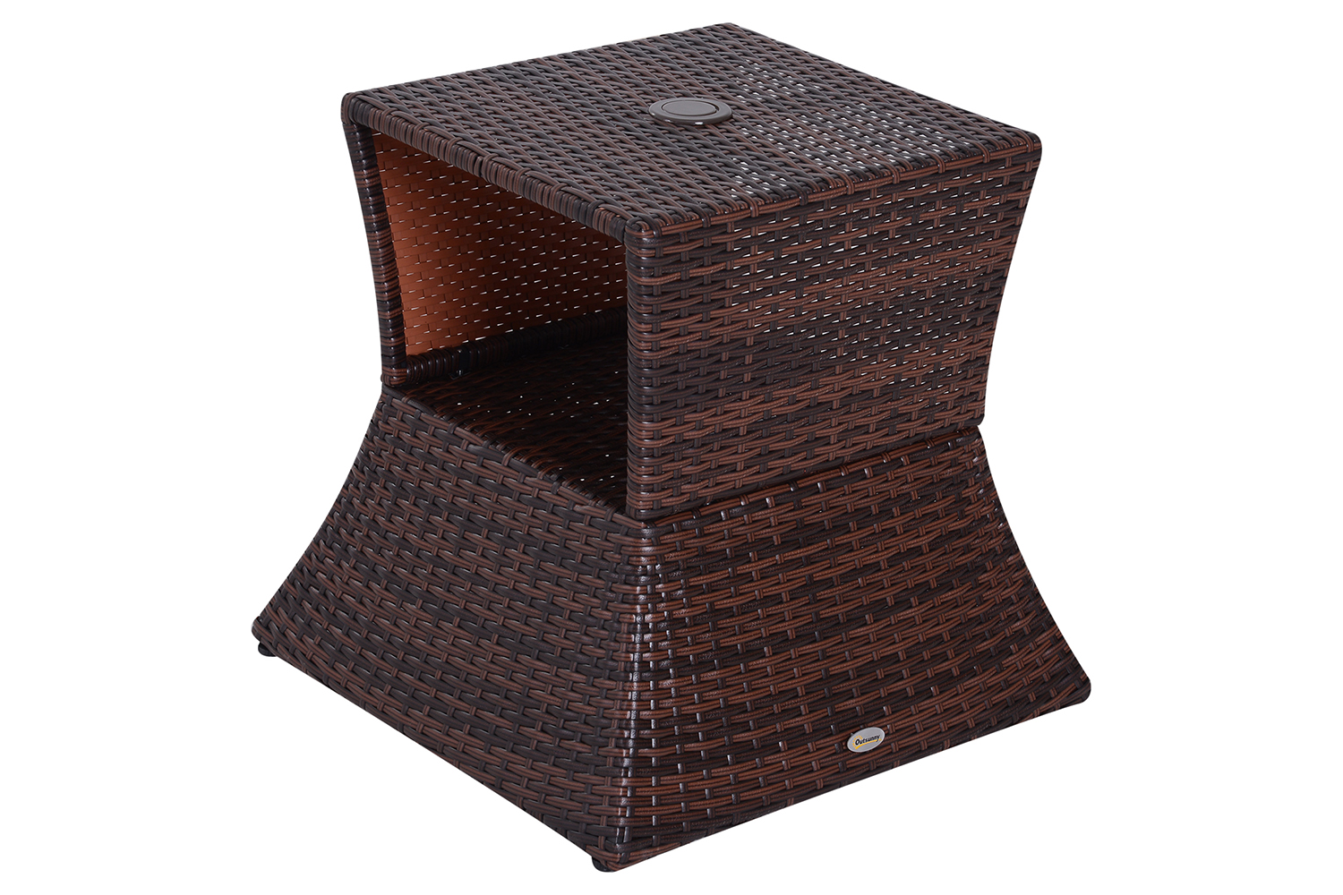 Bring a stylish feel to your coffee breaks with this rattan table from Outsunny. Made with weather-resistant PE wicker wrapped around a metal frame, this table has been built to withstand the weather, along with daily wear and tear to ensure it looks great for years to come. Easy to clean, it features a central hole to place a parasol umbrella, along with an open shelf in the middle to store your necessities when needed. It’s a great addition to your garden, patio, conservatory or balcony.