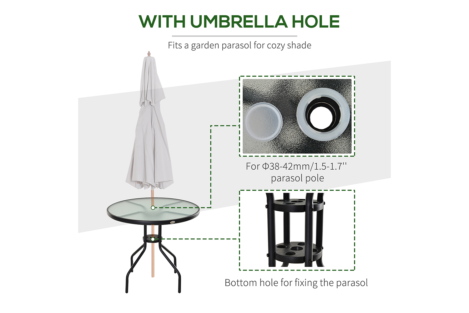 For a simple, yet stylish addition to your garden and outdoor dining area, opt for this bistro table from Outsunny. Made from powder coated steel for strength and durability, the tempered glass top adds a beautiful touch that’s easy to clean and maintain. In the centre, the parasol hole allows you to put up a sun umbrella if you wish and it is kept steady with the four robust and sturdy legs. Simply add some chairs for the perfect early morning coffee and breakfast spot.