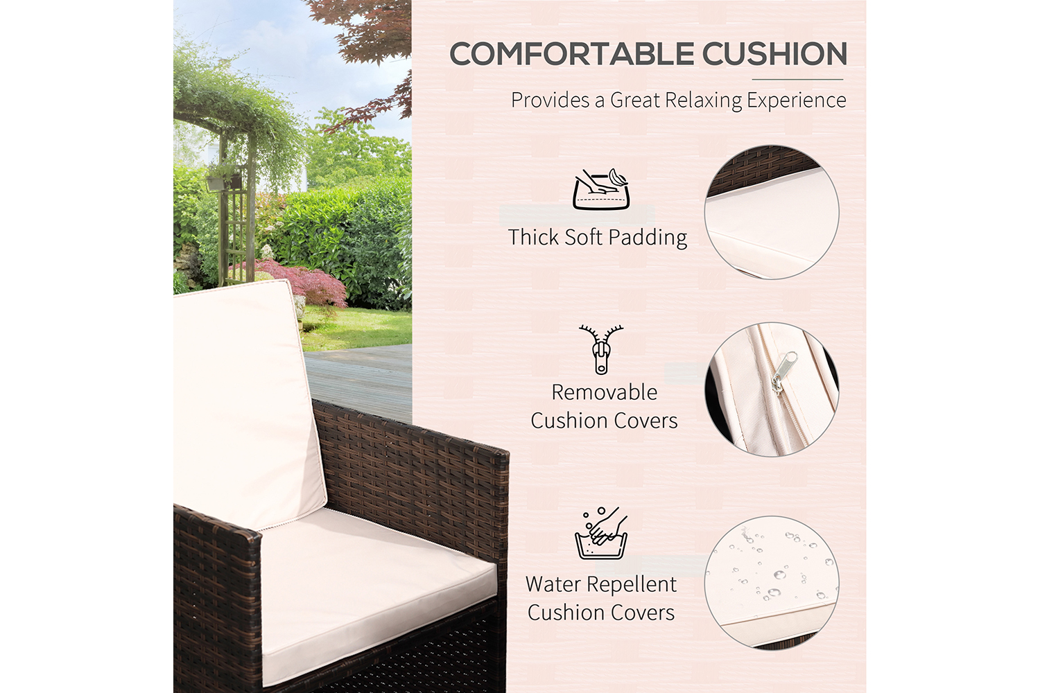 - Detachable zippered cushion cover made of polyester are machine washable