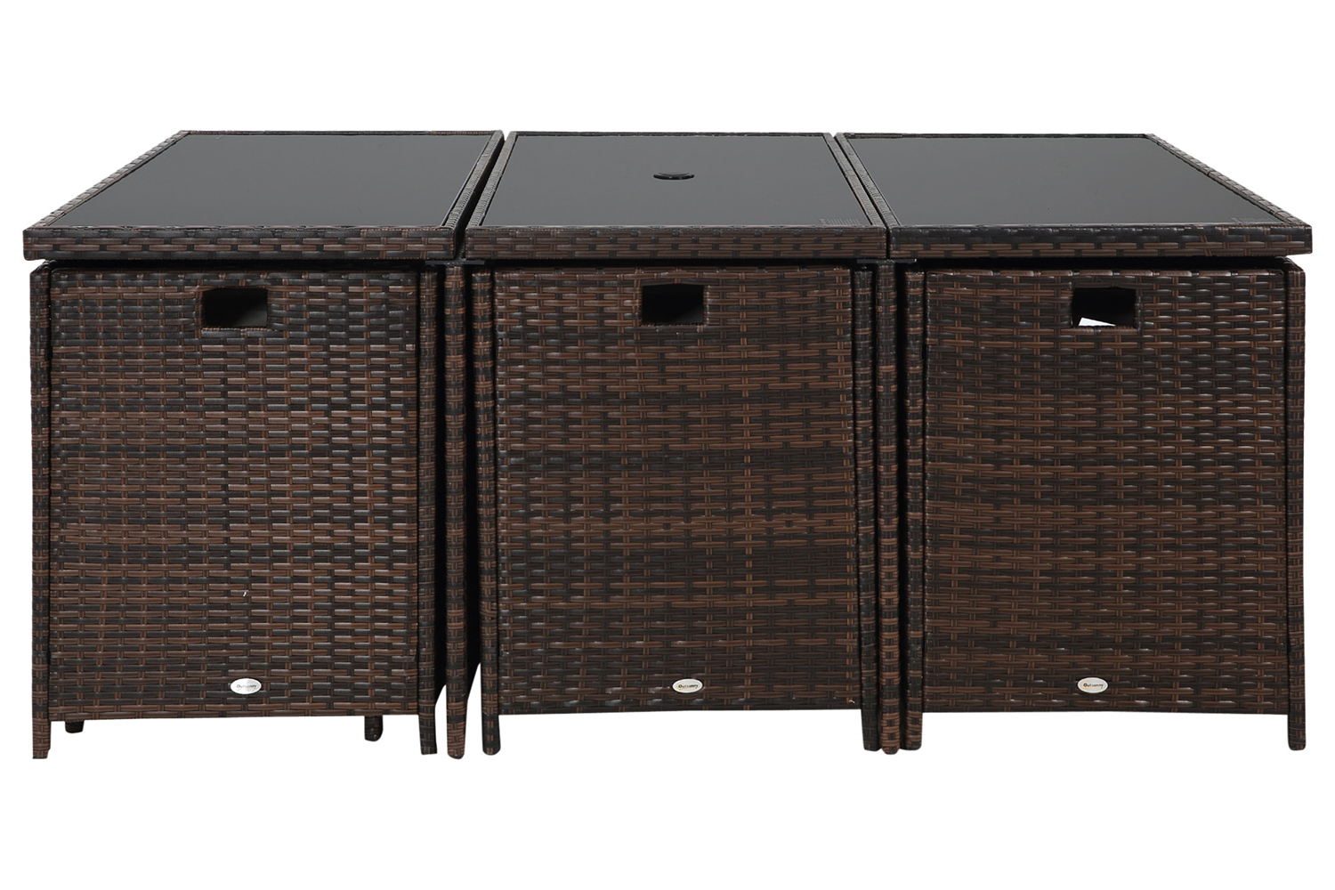 The Outsunny 11 pieces furniture set creates an inviting setting, ideal for patio, porch, poolside and garden. The furniture set is designed from a beautiful wicker material on a reinforced aluminium frame. The wicker and tempered glass table looks very fashionable and create a modern style for your outdoor living area. It is suitable for any occasion, family dinners, parties and more.