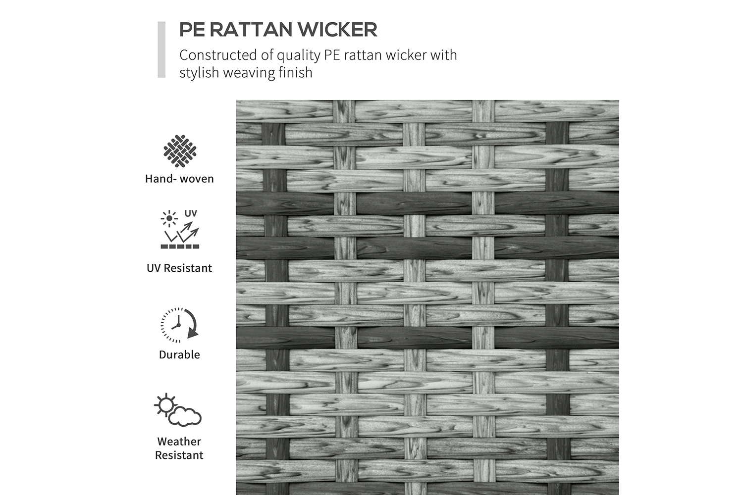 - Color: Mixed Grey wicker, Grey Fabric