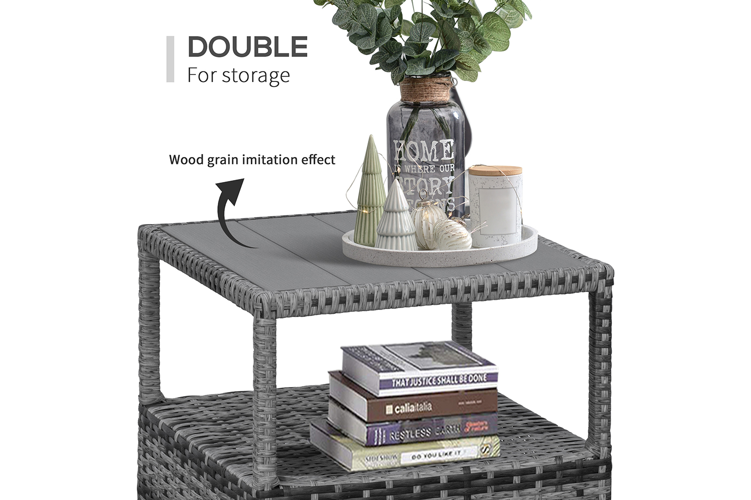 - Table has double the holding space, with a wood-effect plastic top