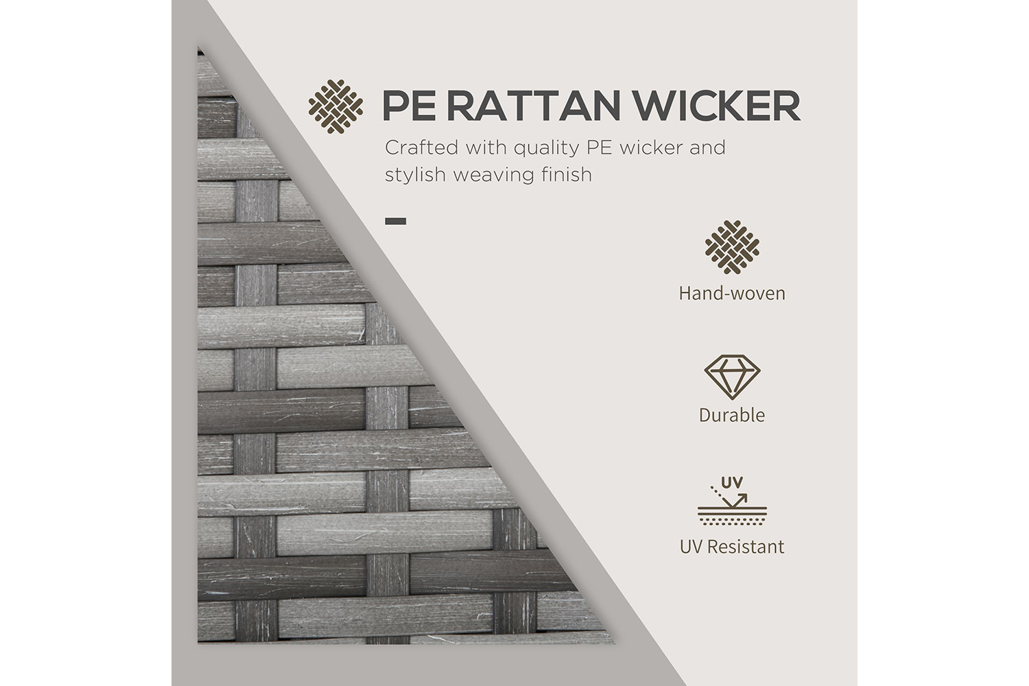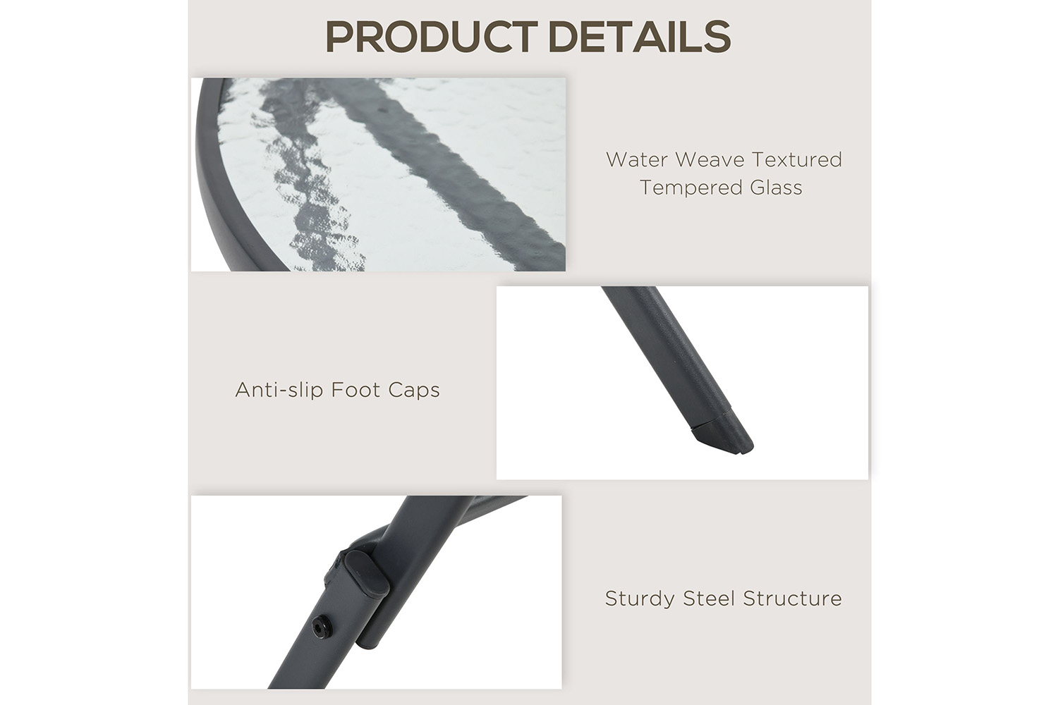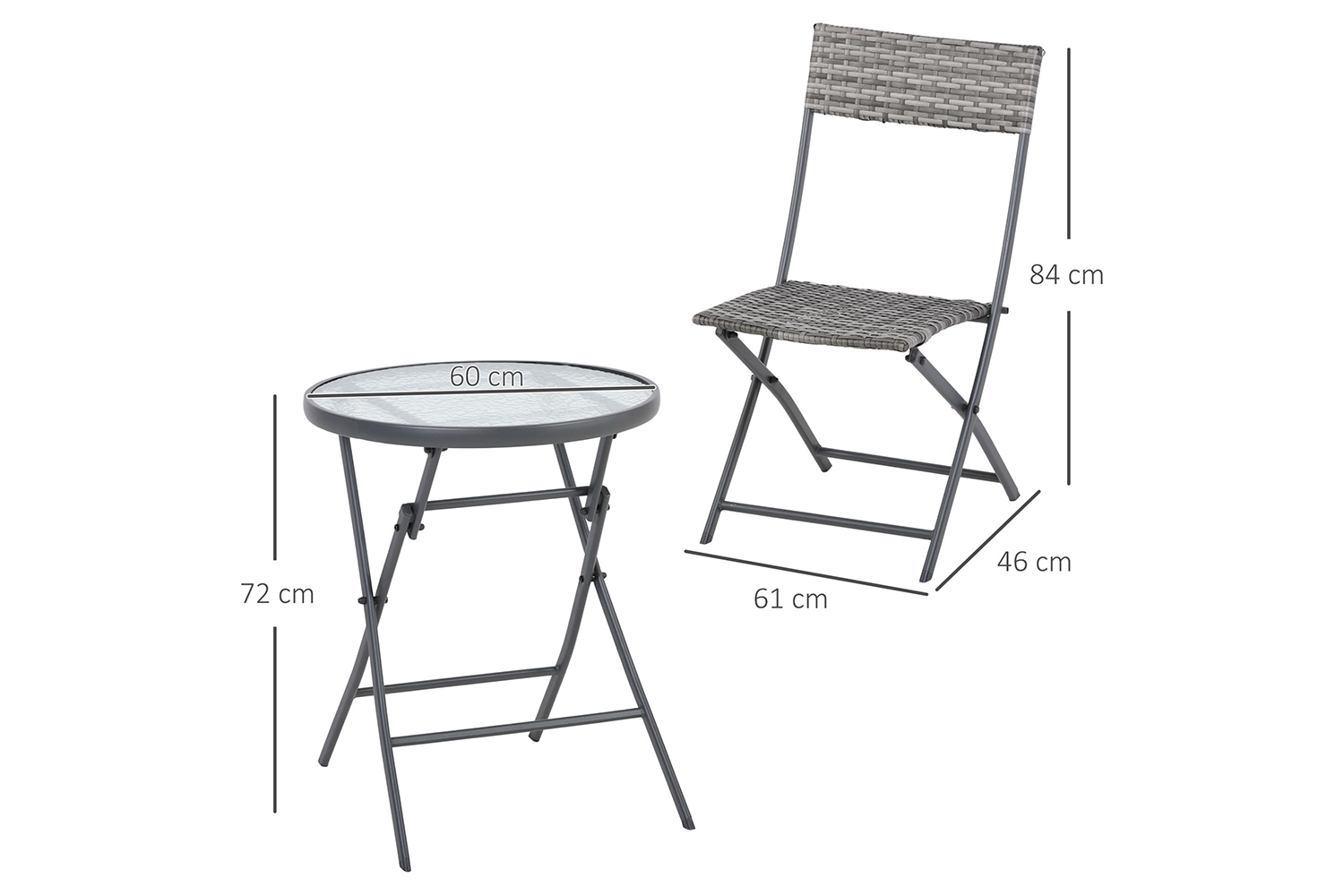 Outsunny's lovely bistro set brings your home decor a delightful upgrade. This foldable option not only provides compact convenience but also features a stunning woven look that instantly upgrades any existing decor. Made of steel frame and durable PE rattan wicker. Round table with tempered glass tabletop allows easy cleaning with a damp cloth, this set offers reliable durability that naturally withstands most weather conditions. Let this bistro set brings you a happy leisure time.