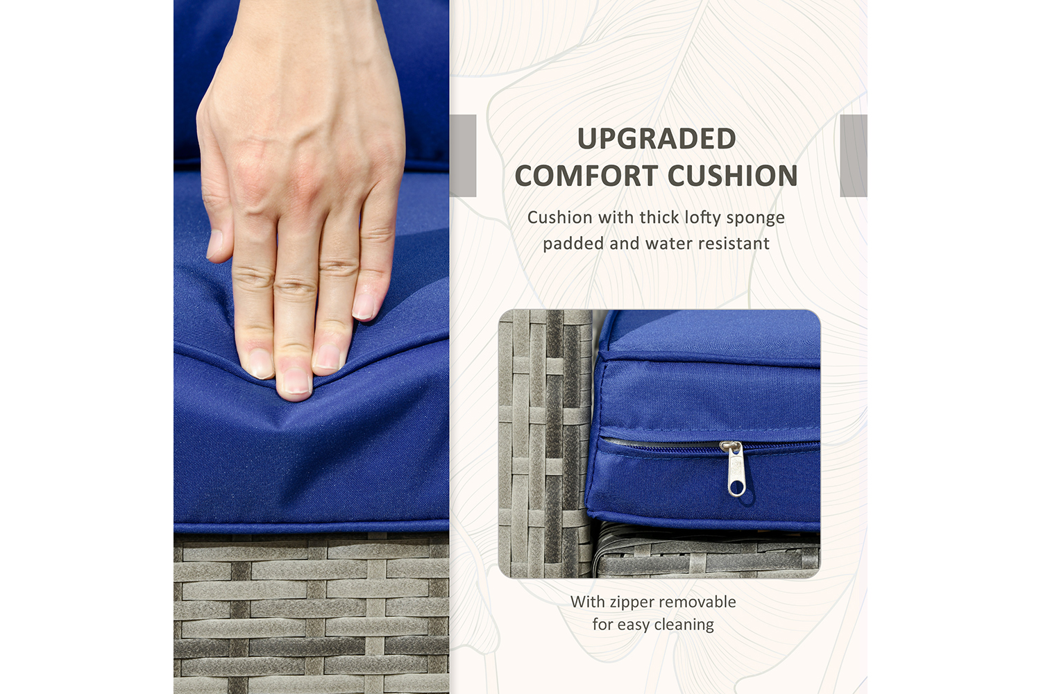 - Material: PE Rattan, Steel, Polyester Fabric, Cotton