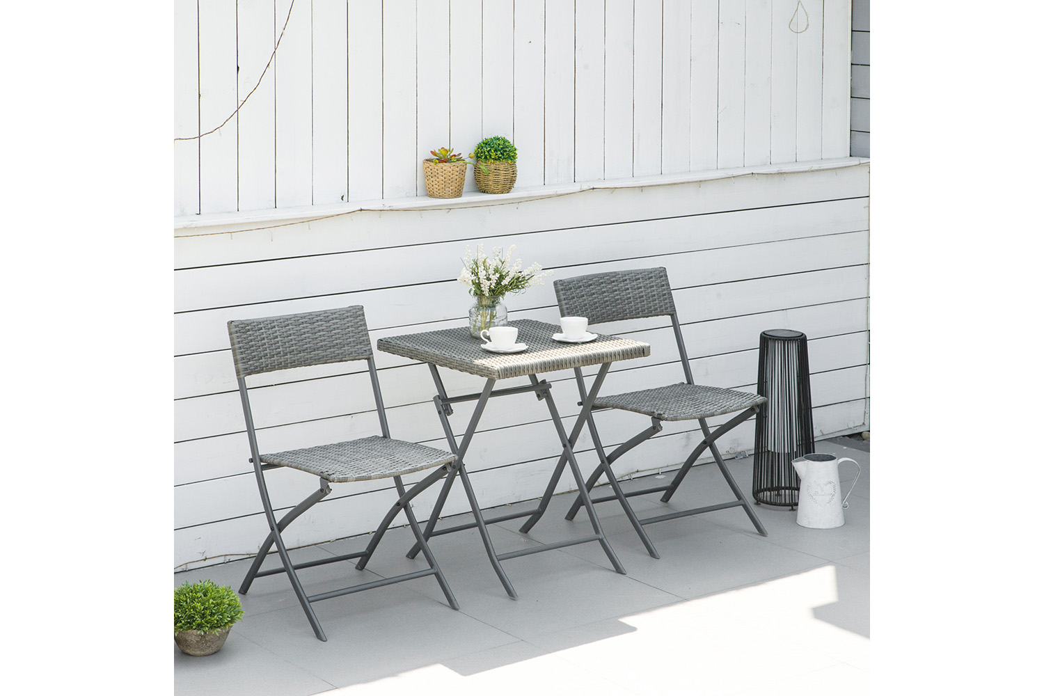 This 3 piece rattan bistro coffee set from Outsunny is a great solution for your garden, patio or balcony. Made with high quality metal tubing and covered with PE rattan, it will last for years to come. The set consists of 1 table and 2 chairs, a great addition to any home. The whole set can be easily be folded and stored away to create space when not in use, this set is not just useful but practical.
