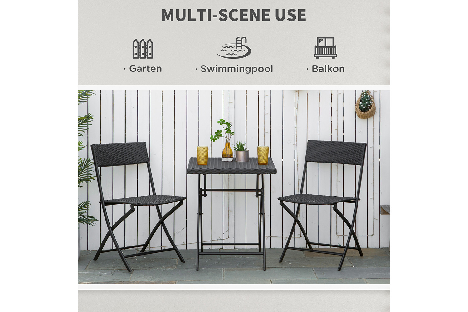 This three-piece rattan bistro set from Outsunny is a great for all garden and outdoor spaces. The frame of each piece is made in two parts: the main metal structure for a tough core, with PE wicker wrapped around for extra durability and resilience for outdoor use. Set comes with one large table and two chairs, making it a great addition for any home. Each piece folds up easily for storage, making it not only beautiful, but a practical garden addition too.