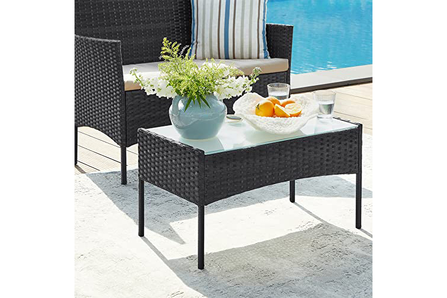 - Material of the chair, table and sofa: Frame made of galvanized metal, polyethylene poly rattan, tempered glass