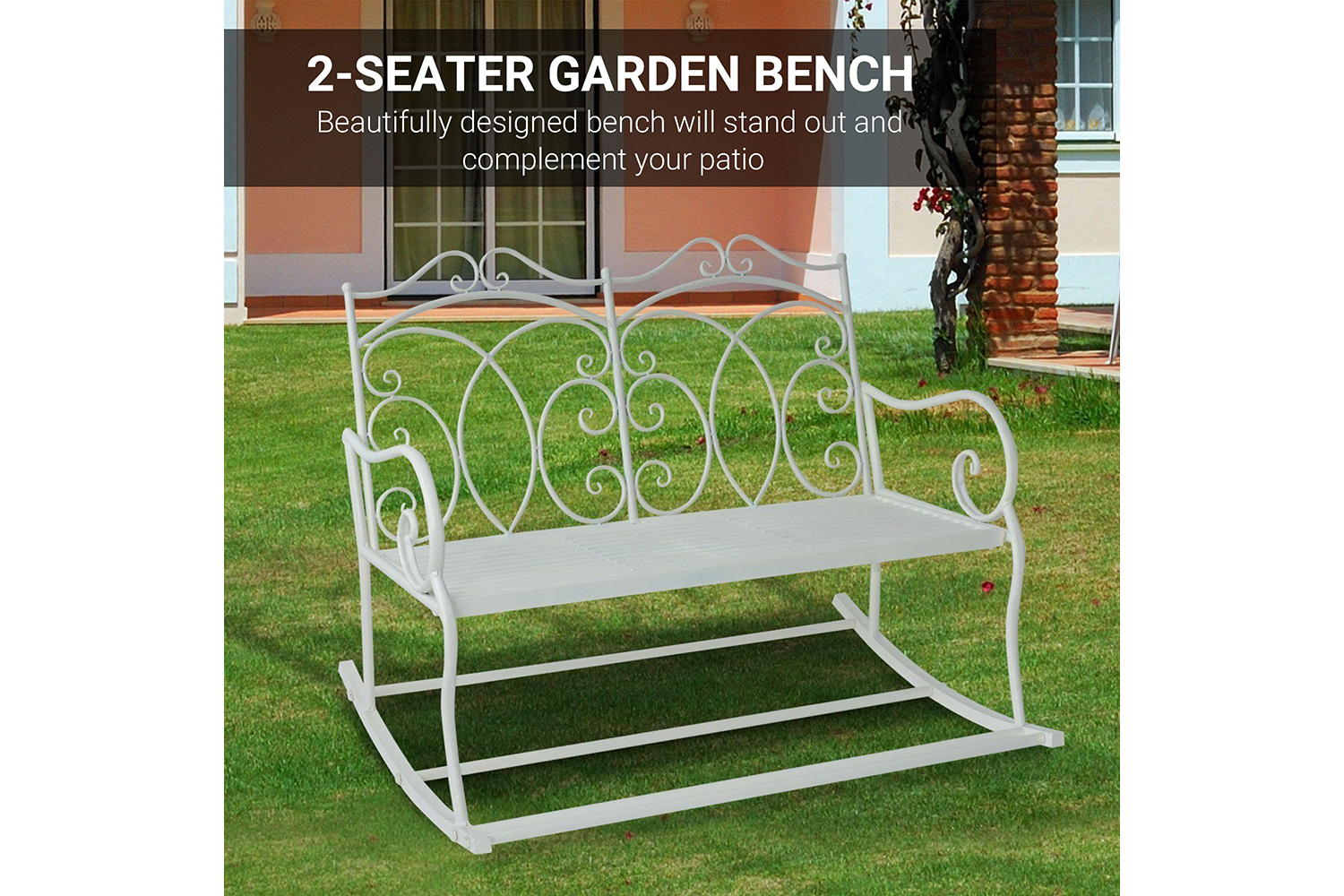 This Outsunny 2 seater rocking bench is a great piece of furniture to have in your garden and patio. Made from metal with a floral design, it will be a great compliment to any home. It is a 2 seater and comes with armrests making it comfortable while you enjoy the sunshine.