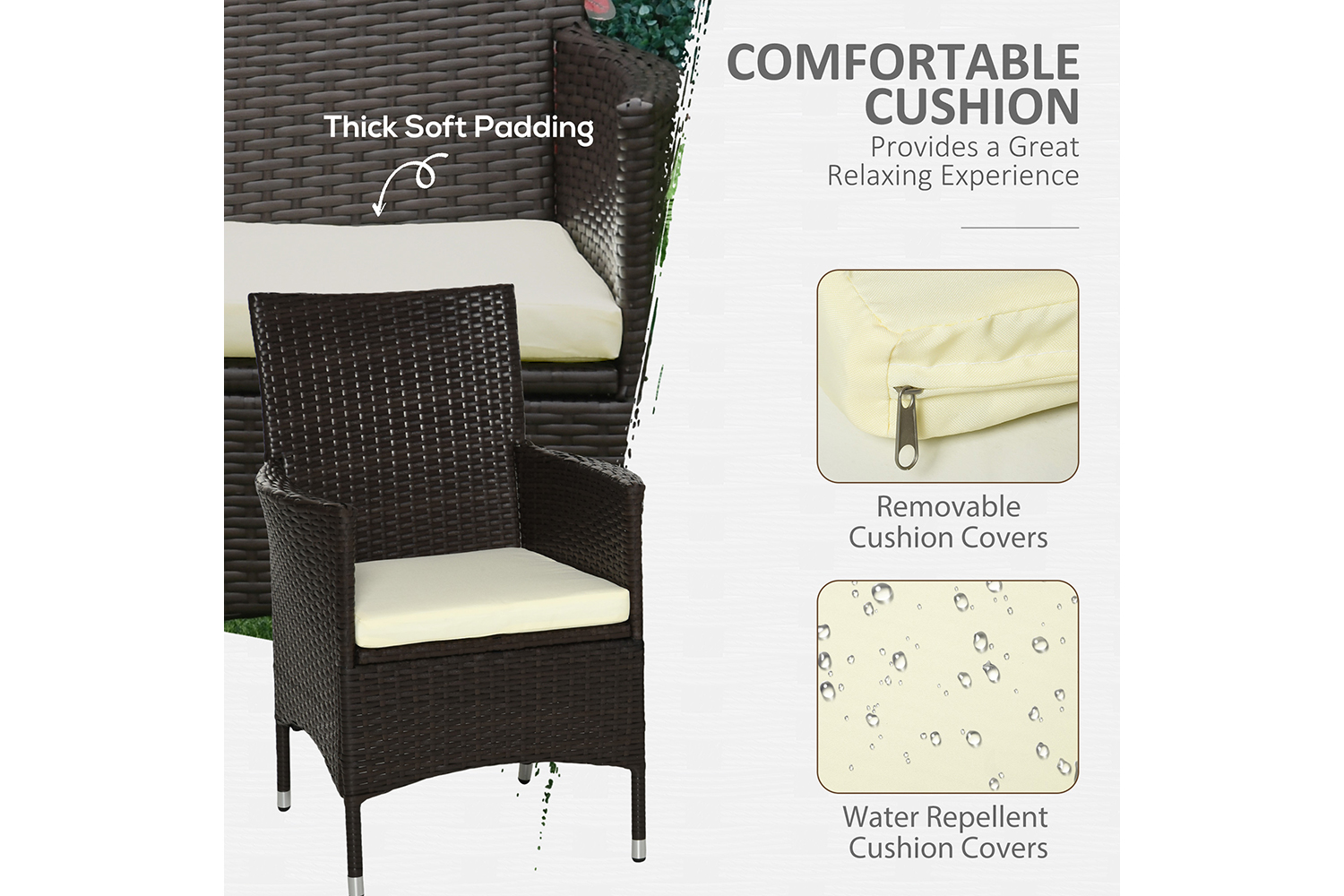 This Outsunny rattan chair which comes in a set of 2 is ideal to compliment your outdoor surroundings. The chairs are made using a Metal frame and PE rattan weave, it also comes with a 5 cm thick seating cushion for comfort. This will be great for any outdoor décor and will also match any other furniture you may have.