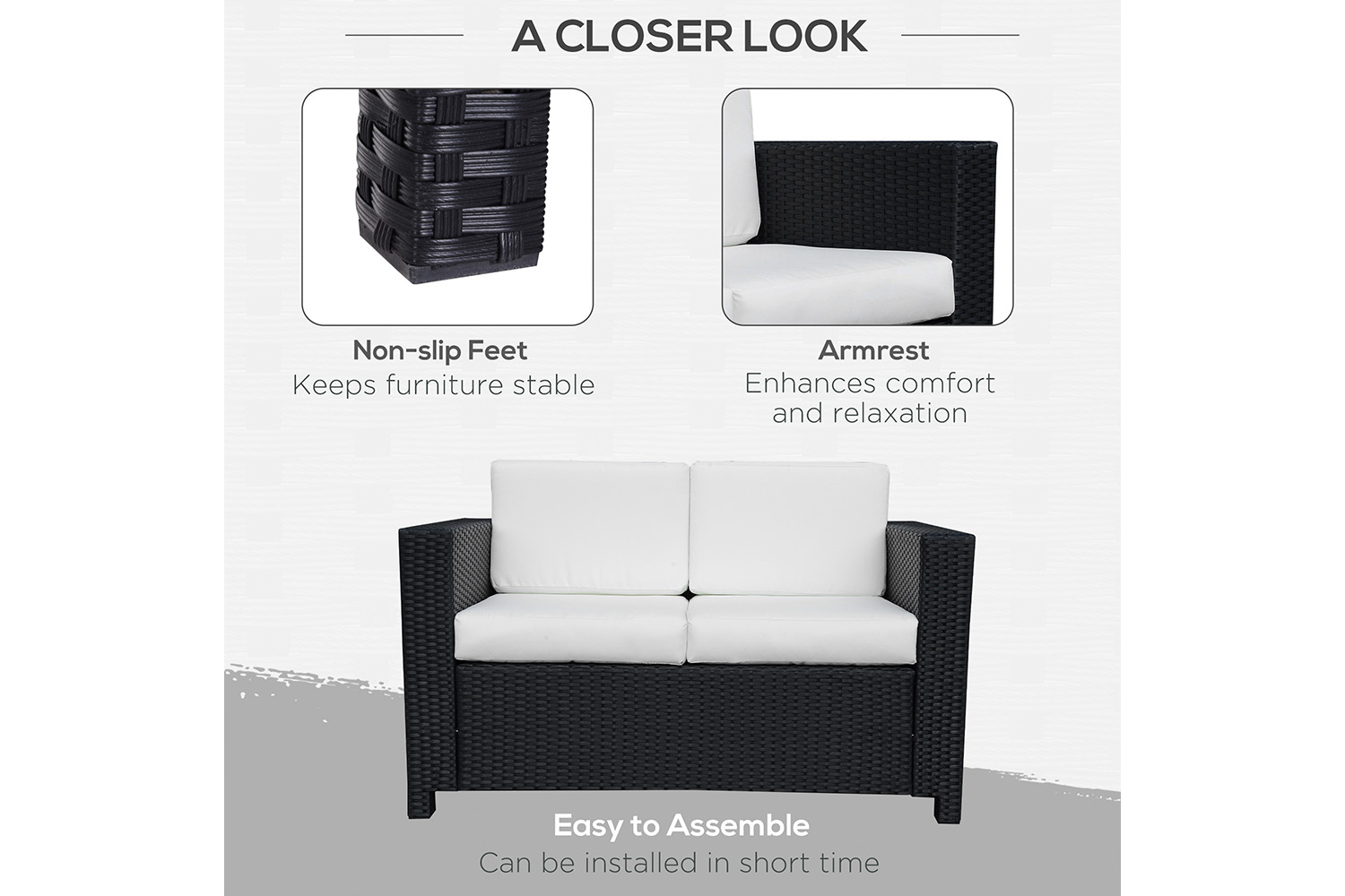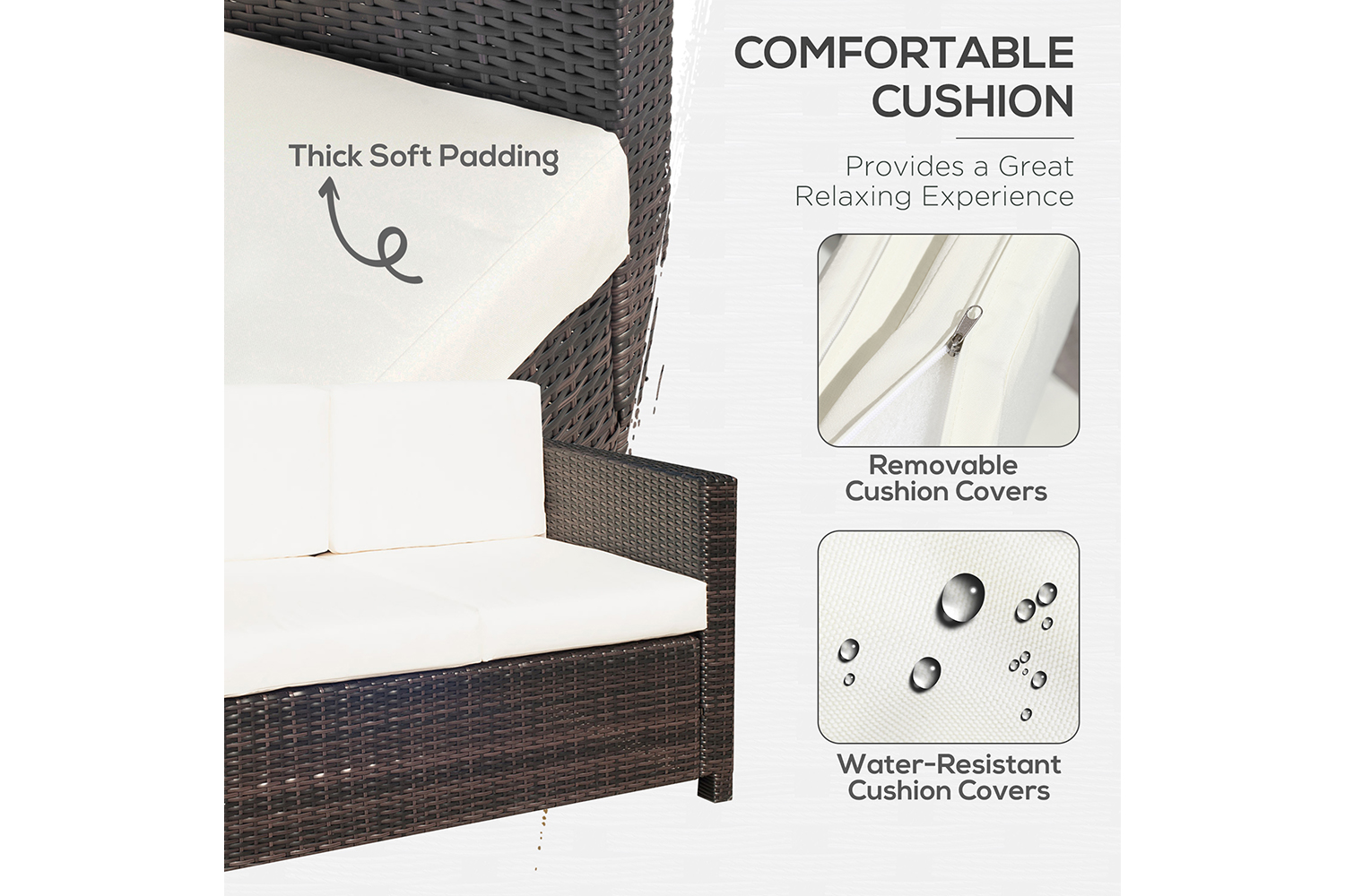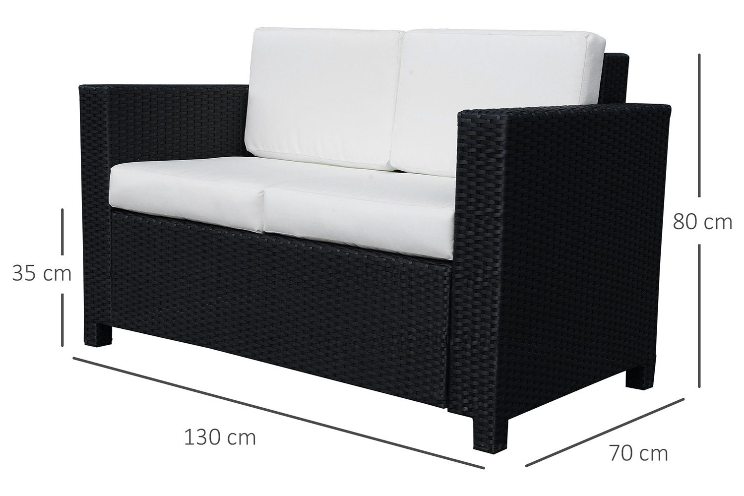 The resort-style double seat rattan sofa chair from Outsunny fits seamlessly into a variety of outdoor setting. Made from all-weather wicker woven over durable steel frame, designed to withstand frequent use and harsh weather elements. The weather resistant seat and back cushions offer additional comfort levels while the handcrafted wicker finish is sure to complement your unique decor taste.