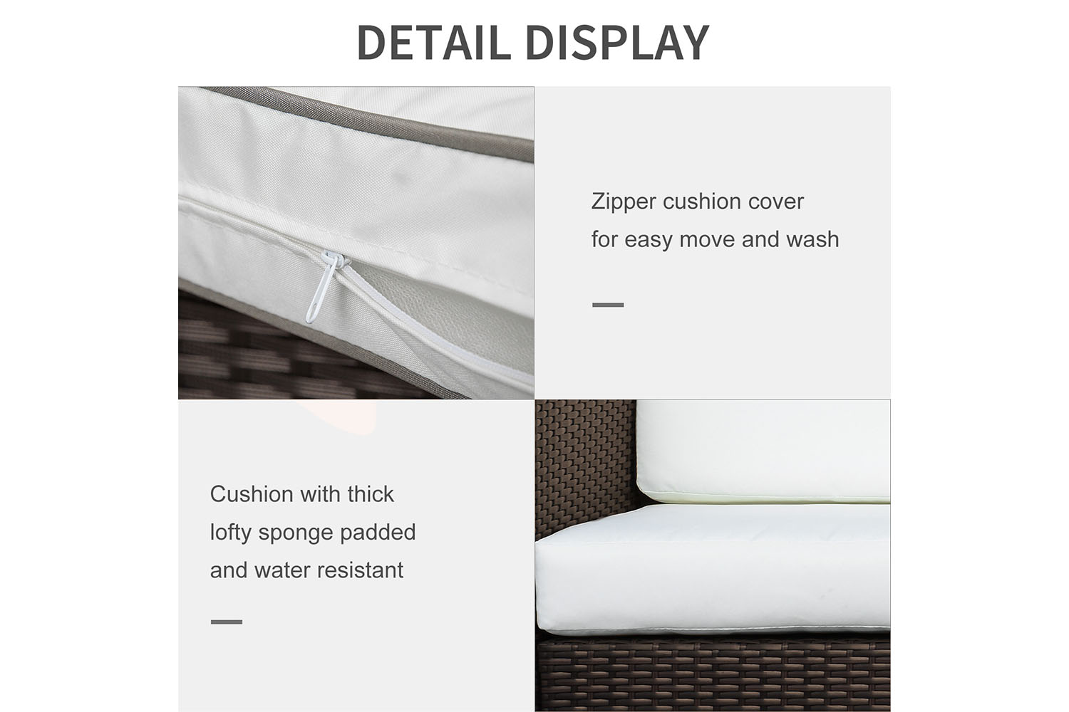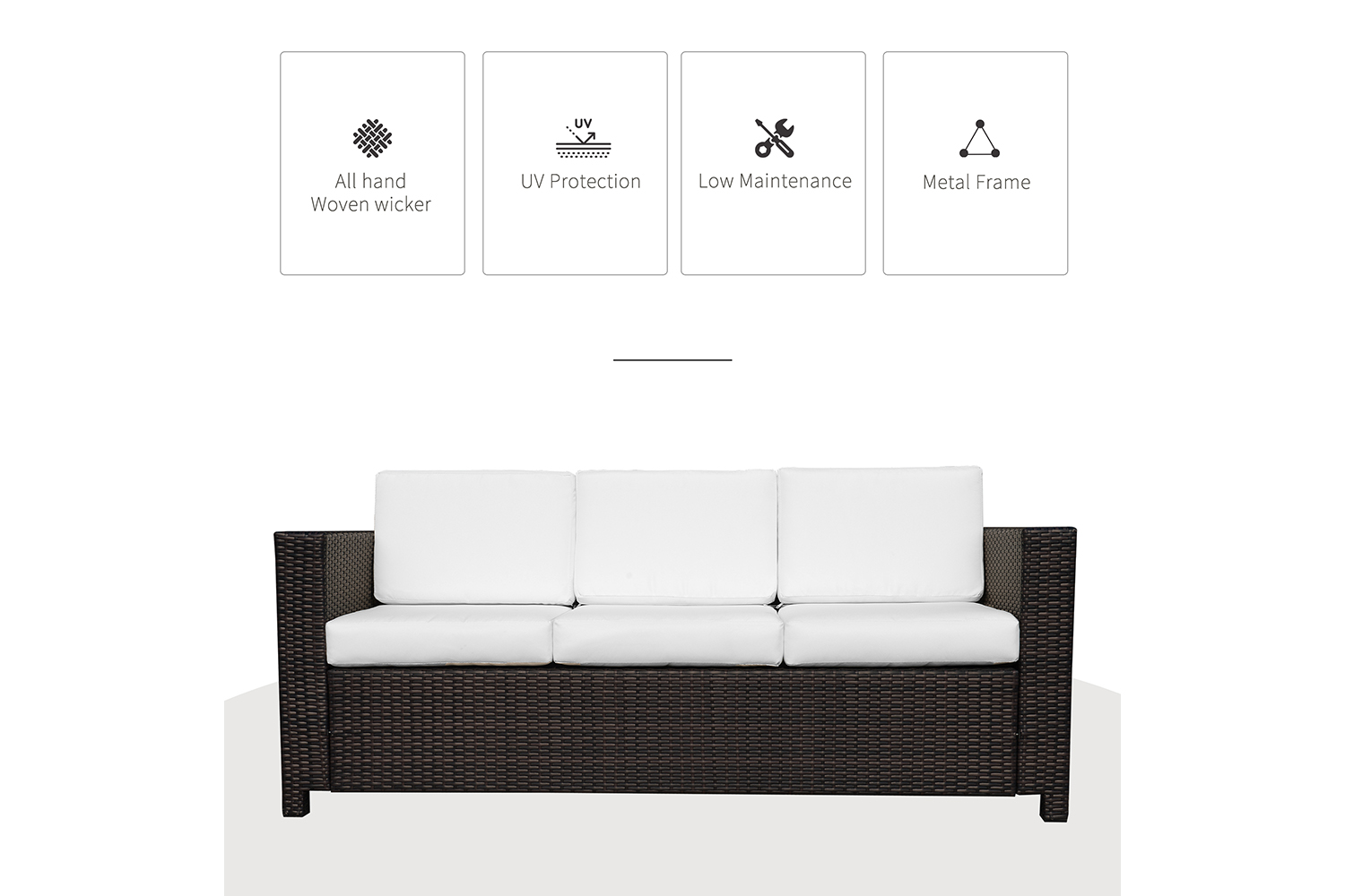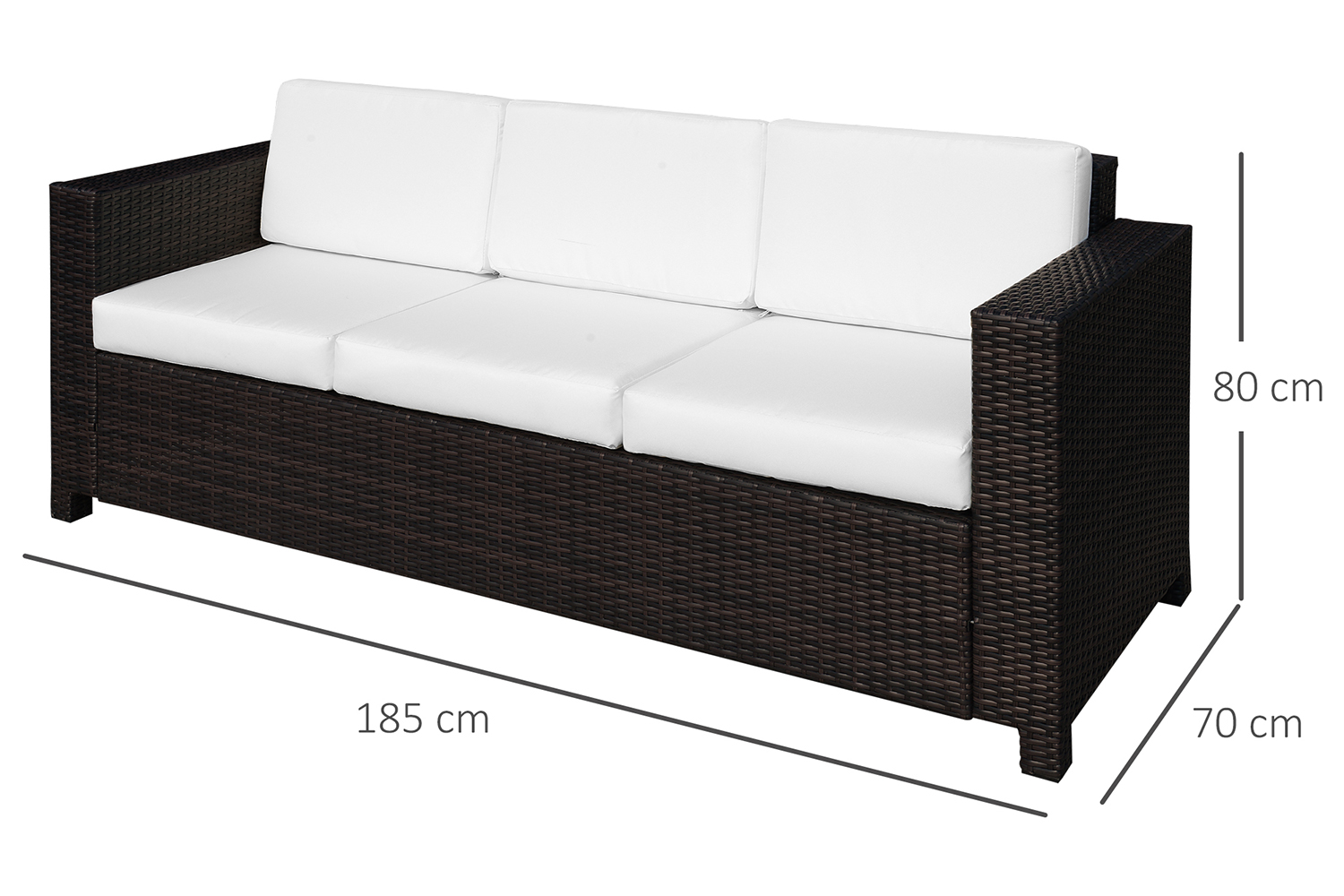 If you love to lounge outdoors, this three-seater outdoor sofa from Outsunny is the piece for you. Using a combination of a power coated and galvanised frame for the core, with plastic wicker, this piece has been made to last for years, with extra thick cushions on the seats and back. High on the back, with high armrests and longline seats for support, this sofa is finished with four feet to elevate and protect the main frame, as well as keeping it level and balanced on the floor.