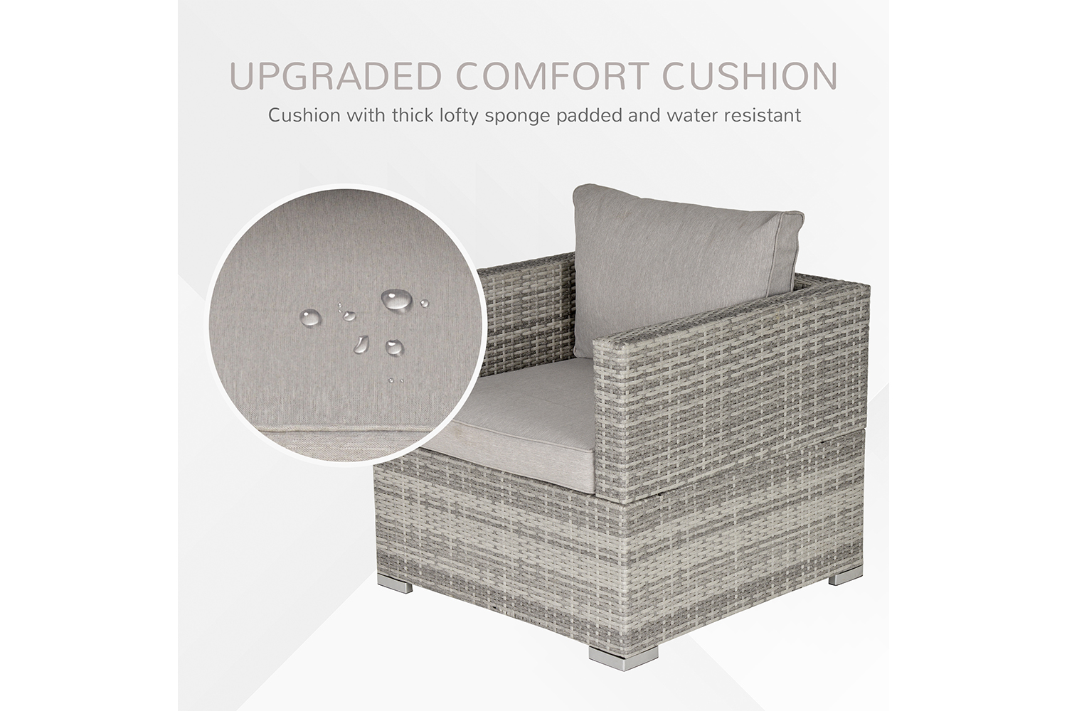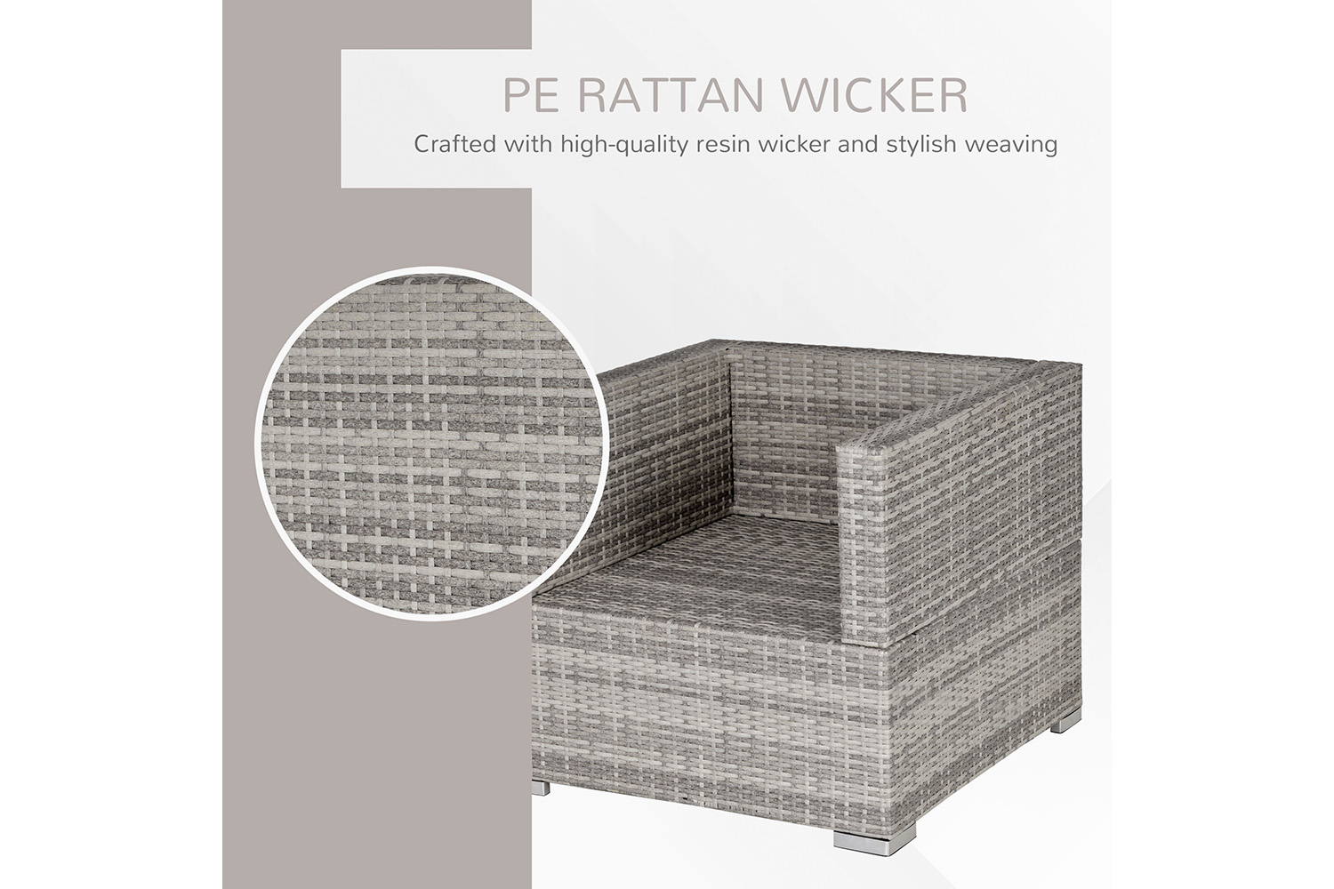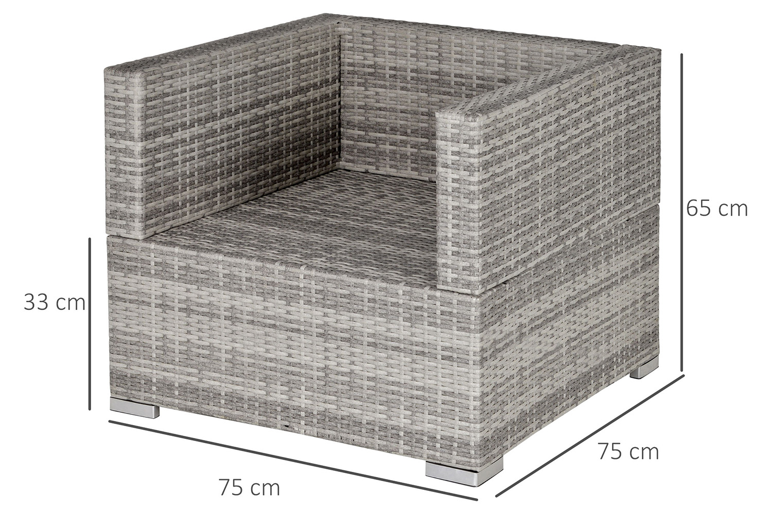 This single sofa chair by Outsunny is a modern and trendy outdoor patio furniture that provides the user the unique reconfigurable design, offers comfortable and exceptionally stunning outdoor relax and sit. This PE rattan wicker single sofa assemble with all instructions and hardware included. You can arrange the perfect shape to match your deck or garden. It is perfect for the pool side, deck or patio, its cushioned seat will let you and your guests to sit back, relax and enjoy the great outdoors.