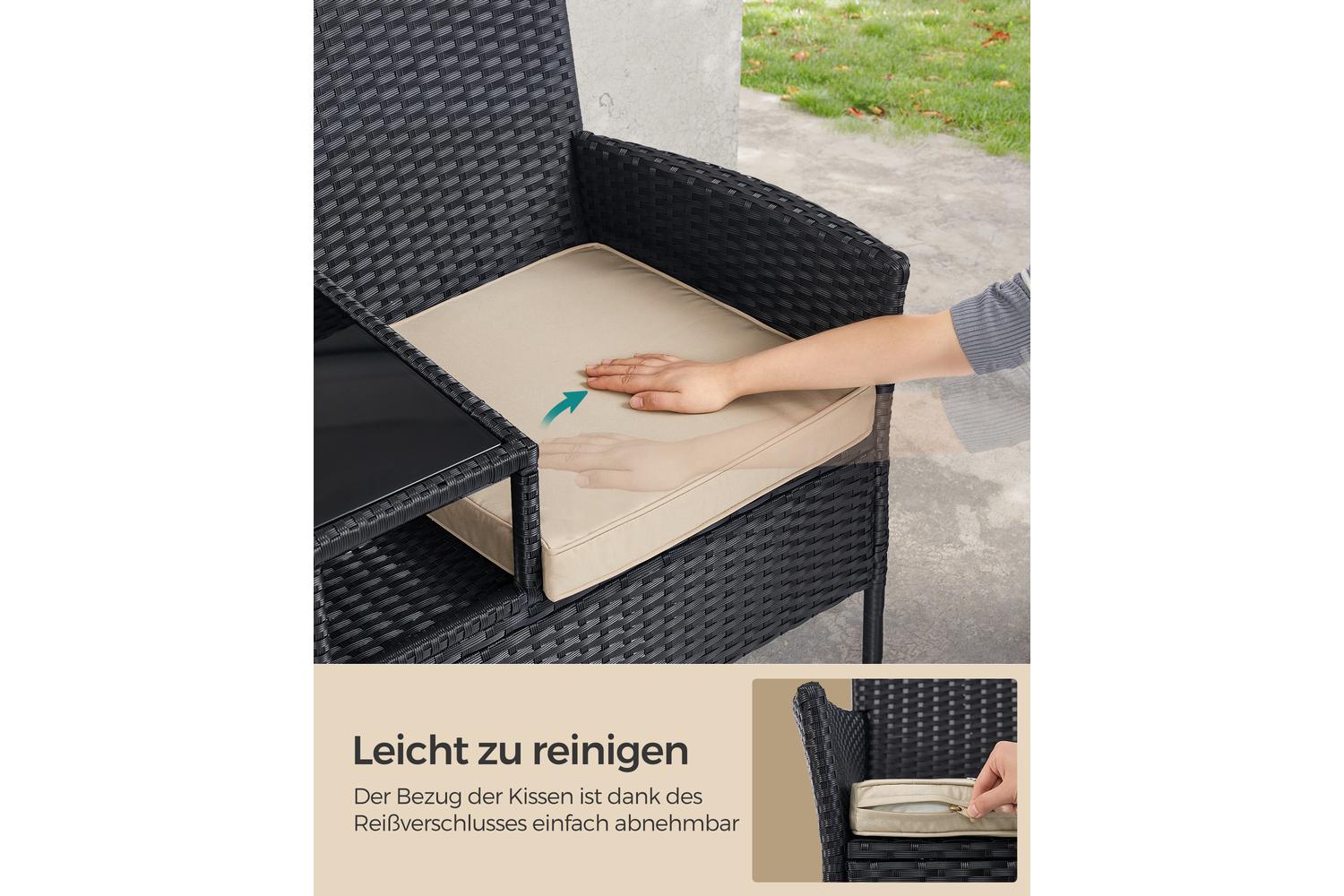 Enjoy effortless maintenance thanks to the easy-care polyrattan surface, which can be quickly wiped clean with a damp cloth. The removable cushion covers are also simple to wash, keeping your outdoor lounge set looking fresh and inviting all season long. With well-padded cushions, a wide seat, and ergonomic armrests, you can unwind in comfort and style, whether you are sipping your morning coffee or hosting a summer barbecue.