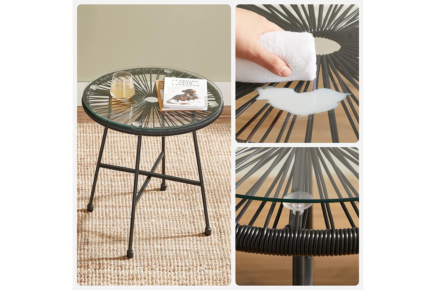 - Material: PE (Polyethylene) Rattan, Powder-Coated Steel, Tempered Glass