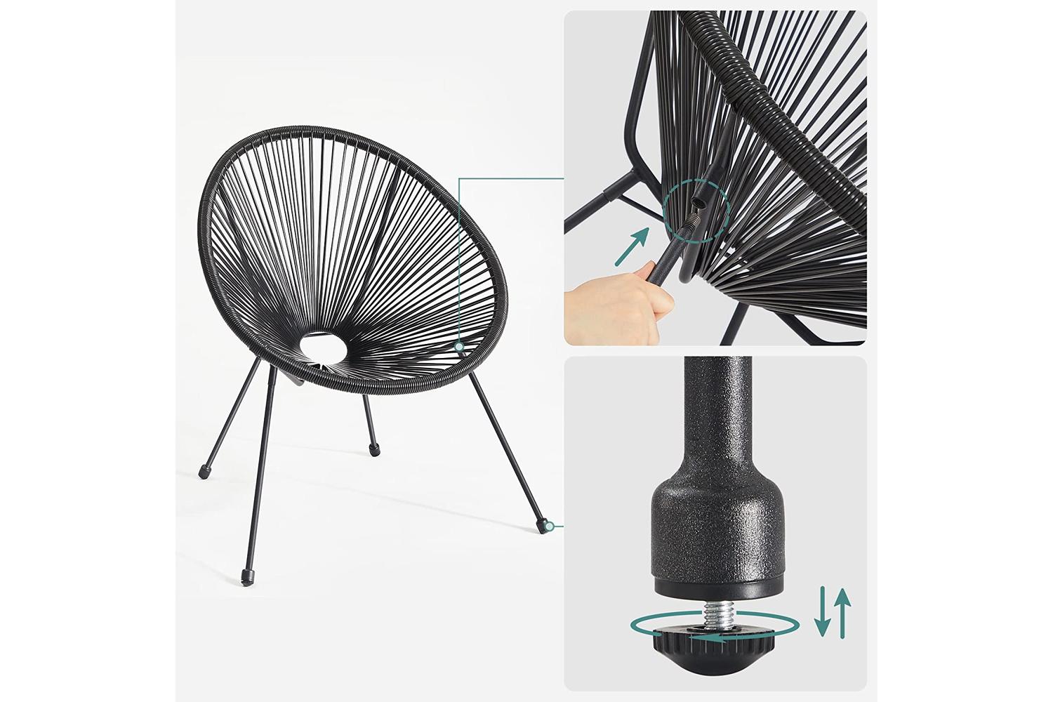 Designed with comfort in mind, the two spacious chairs offer ample support and a generous weight capacity, ensuring a relaxing experience for everyone. The compact side table is ideal for smaller gardens or balconies, making this set a versatile choice for any outdoor space. With easy-to-follow instructions and an included accessory kit, assembly is quick and hassle-free, so you can start enjoying your new garden furniture set in no time.