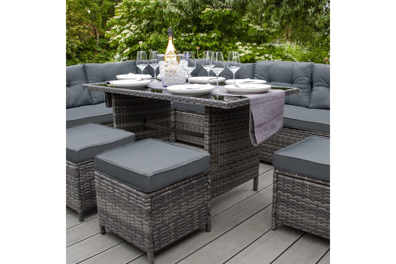 Complementing this stunning dining set is rattan garden storage box - an essential addition for ultimate organisation and style. The robust powder-coated steel frame and UV-resistant grey rattan finish ensure unmatched durability and a modern outdoor aesthetic. With a generous 582L capacity, this storage box is the ideal accompaniment to rattan corner set, providing comfortable housing for all the cushions.