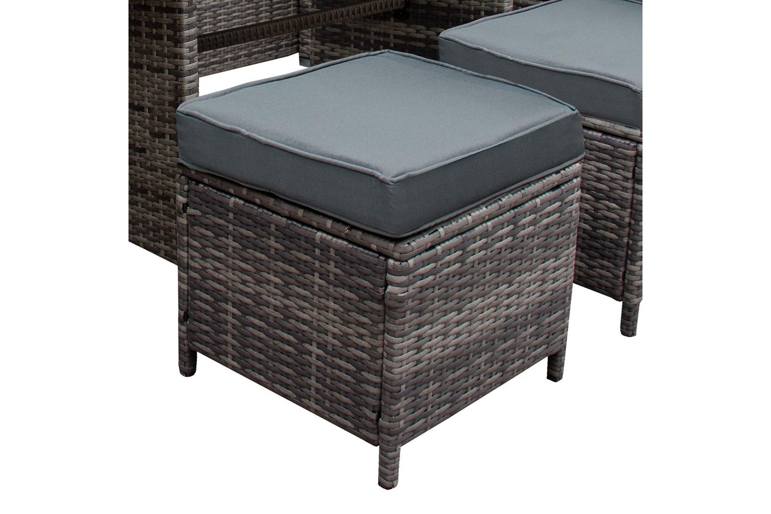 Practicality meets sophistication with waterproof cushions that have removable and washable covers, ensuring your set always looks like new. The high-quality rain cover provided ensures year-round protection for your sofa set, eliminating the need to bring your furniture indoors during wet and rainy conditions. This rattan corner dining set is a low-maintenance, stylish option that transforms your garden into a personal paradise, making you the envy of all your friends and neighbours.