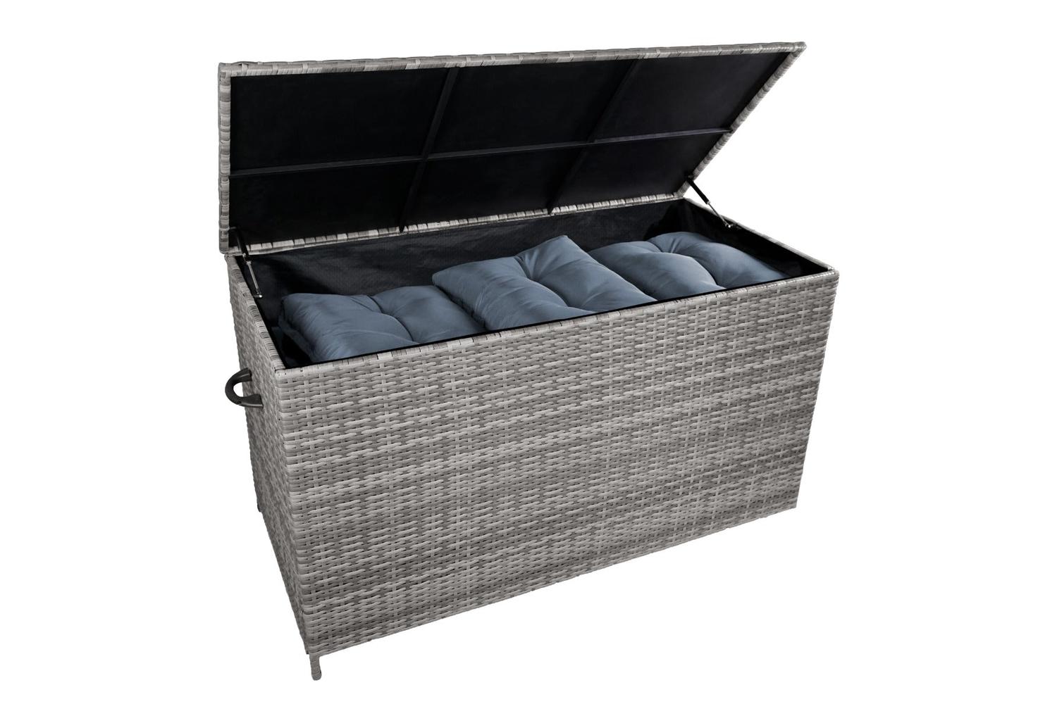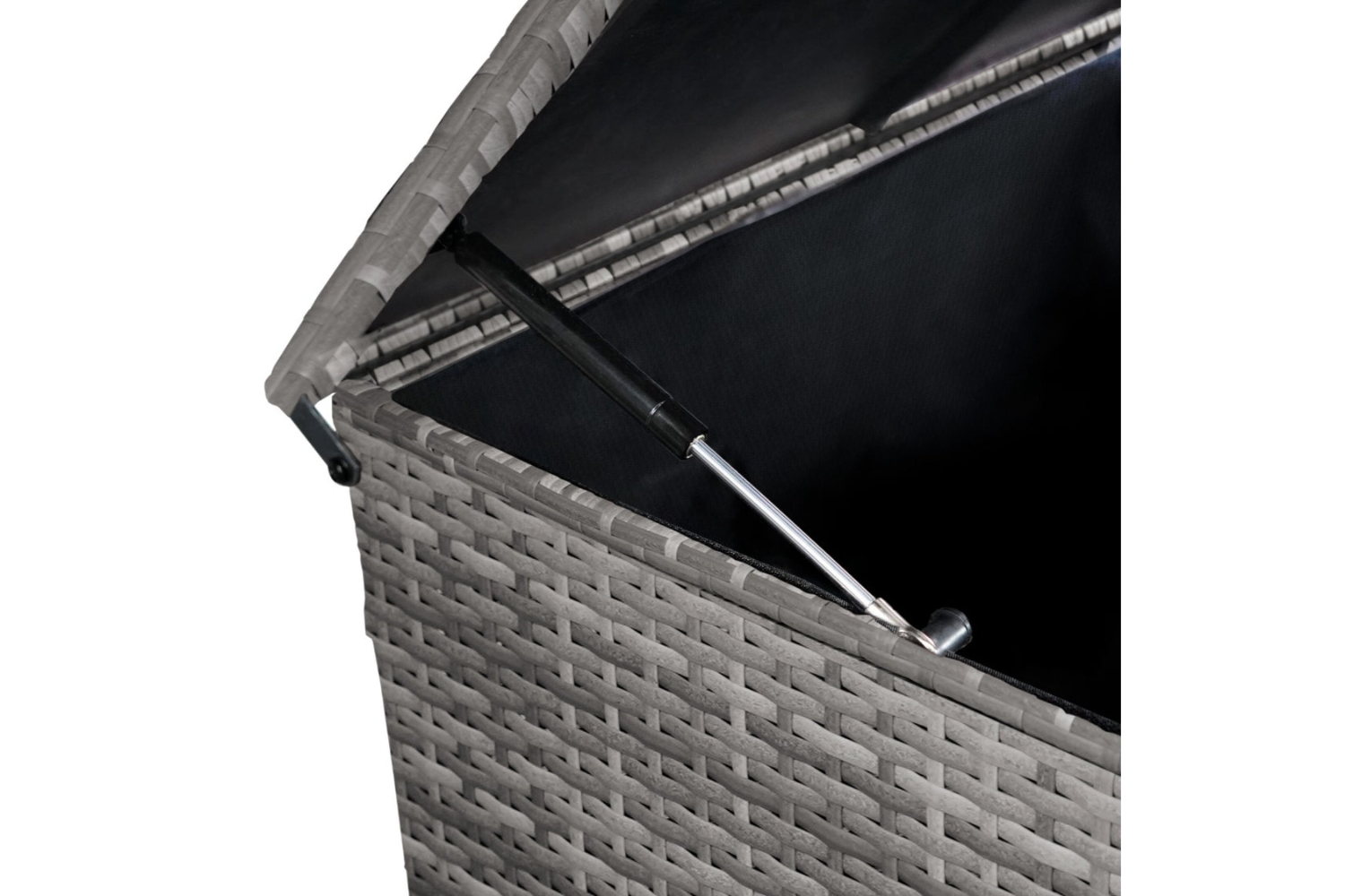 The waterproof interior lining and premium Oxford waterproof storage bag, equipped with a zip and handles, ensure the protection of your cushions against various weather conditions. The gas-assisted lid lift mechanism, equipped with two pneumatic pistons, allows for a smooth lift and gentle closure, offering a user-friendly experience.