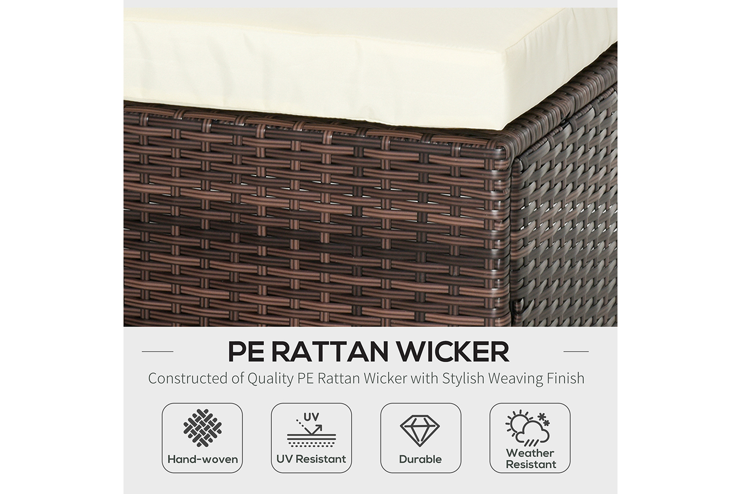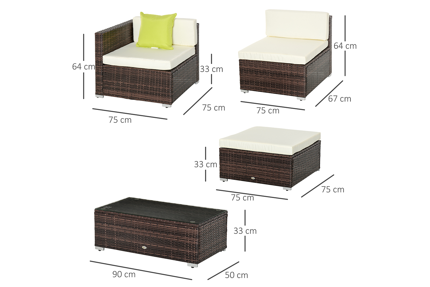 Brighten your backyard with Outsunny 5-Piece cushioned outdoor rattan wicker sofa sectional patio furniture set and make the outdoors just as inviting as your indoors. Oftentimes, due to uncomfortable seating or simply a lack of furniture, many outdoor environments go underused or ignored completely. Change all that with a simple, in one of Outsunny designer outdoor furniture set. Decorative and functional, the furniture set creates an inviting setting you'll want to use for years.