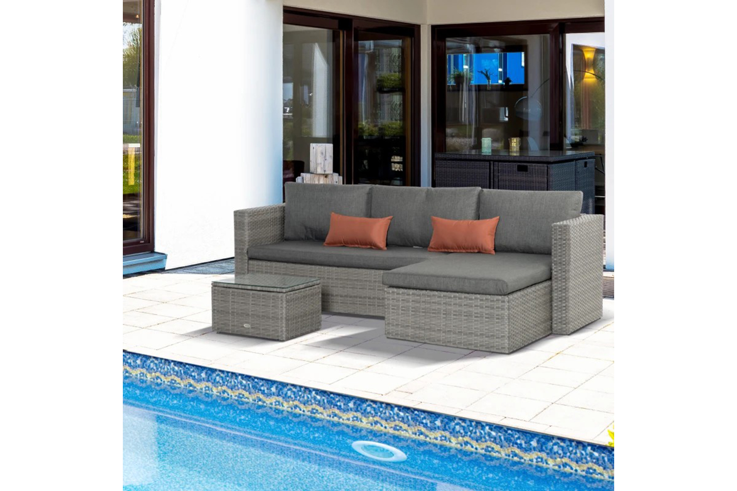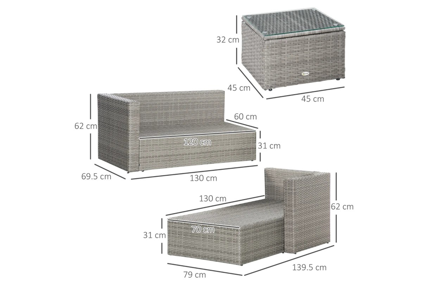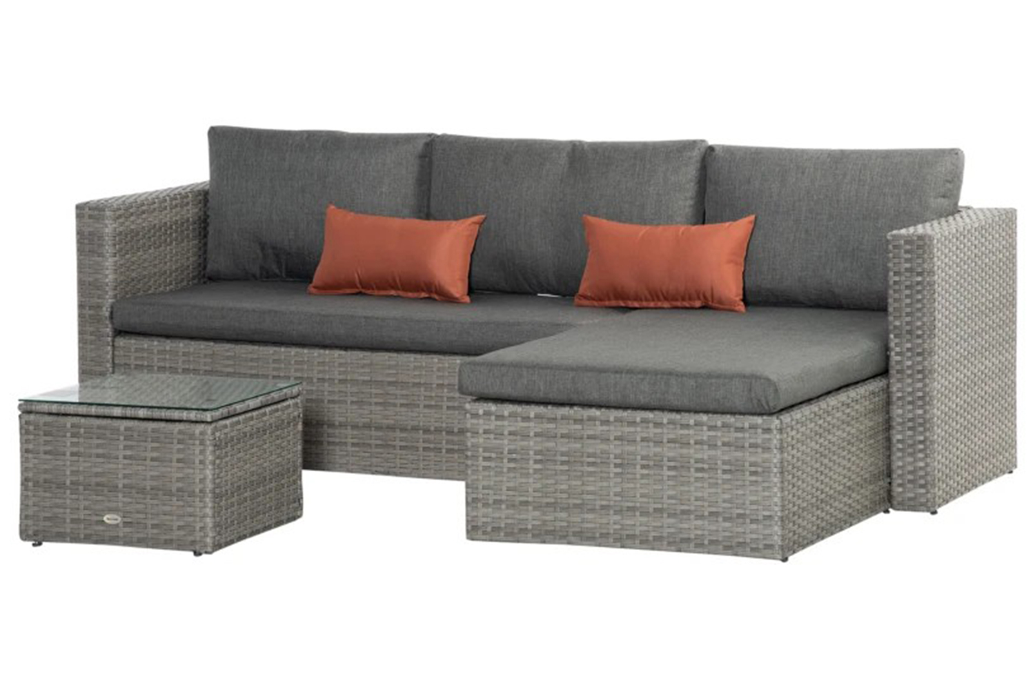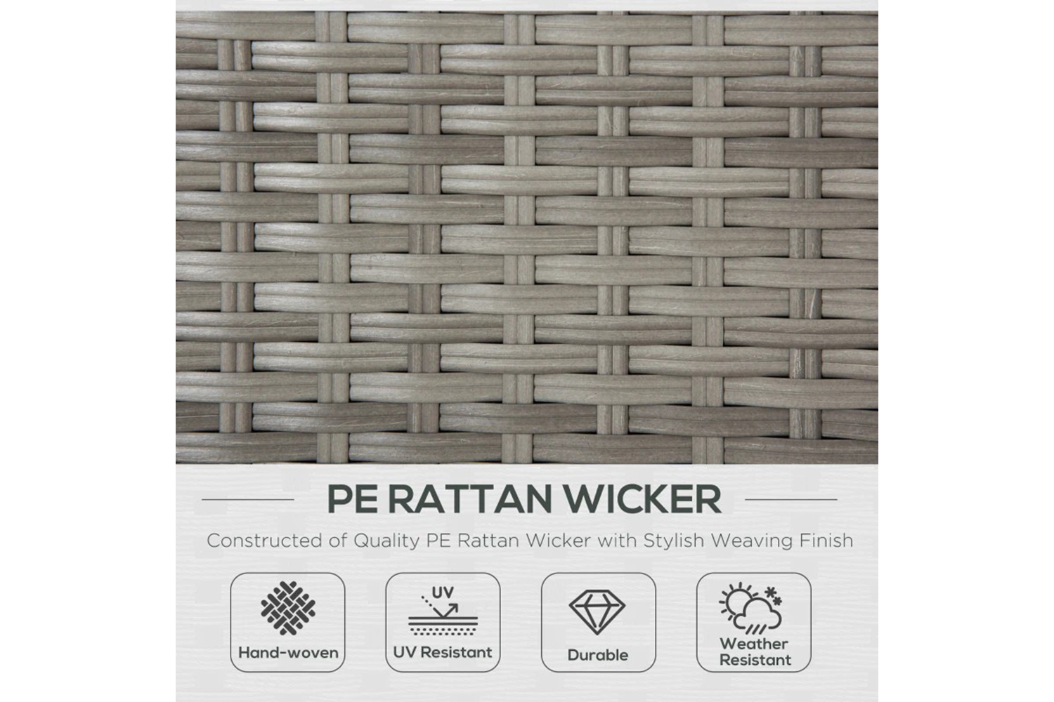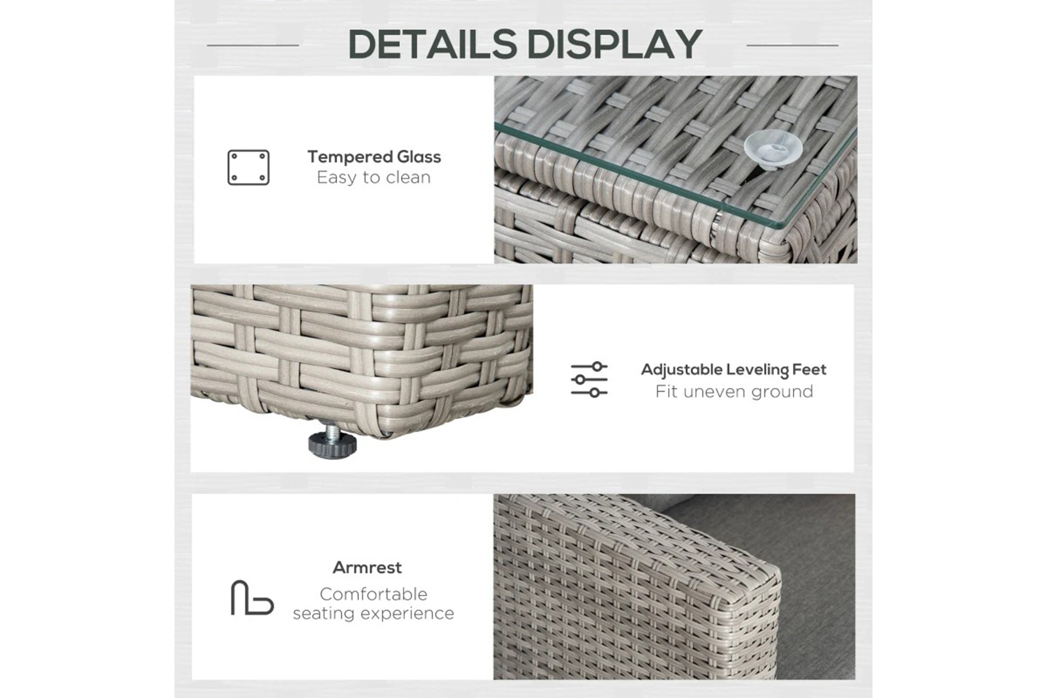 This Outsunny rattan sofa set makes your garden just as inviting as the inside. Powder coated steel frames mean tough pieces, wrapped with plastic wicker for a rattan-ready look - in light grey for versatile style. Padded seat and back cushions keep you comfortable. Matching coffee table with glass top for a solid handy holding place. An inviting set for your garden.