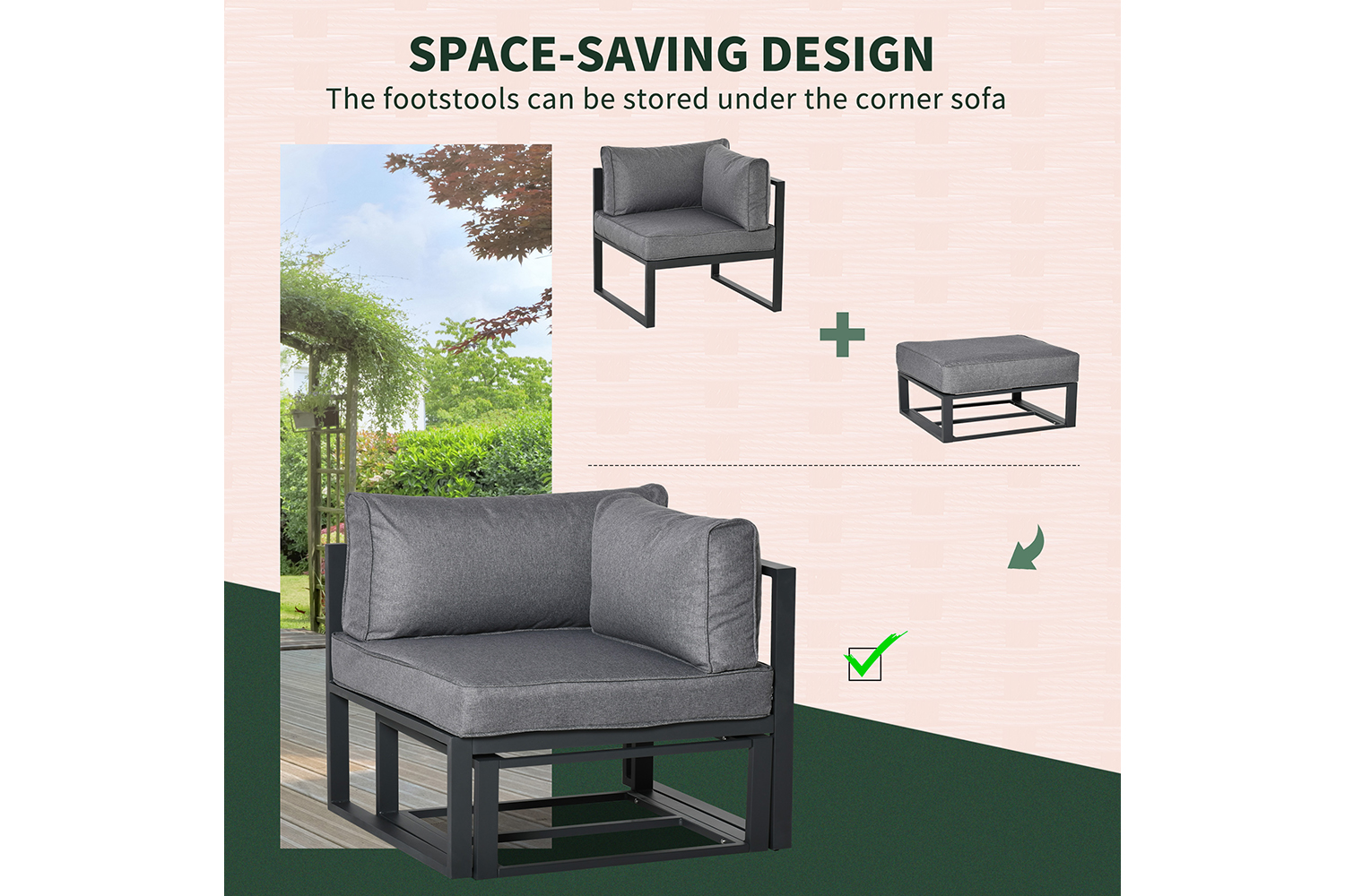 6 Piece Set: 2 x Corner Sofa, 1 x Middle Sofa, 1 x Coffee Table, 2 x Footstool