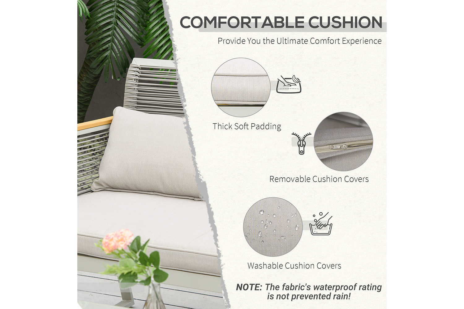 - Cushion covers with zippers for easy remove and washable
