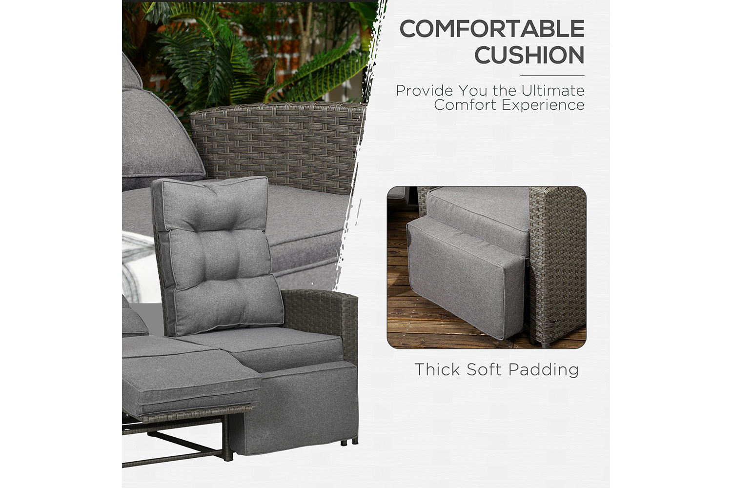 - Colour: Grey rattan, Grey cushion