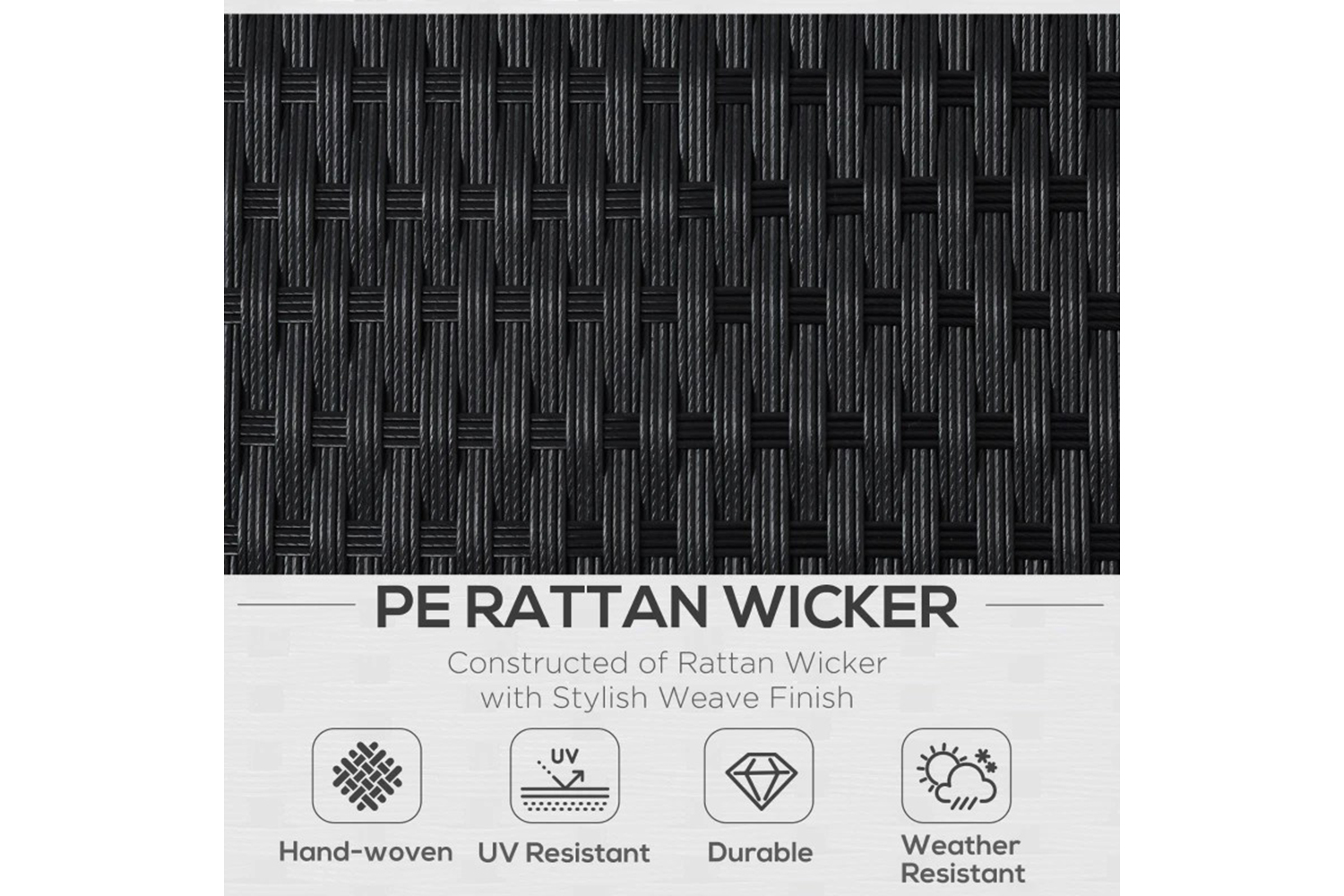 - Material used: PE rattan, aluminium frame, tempered glass