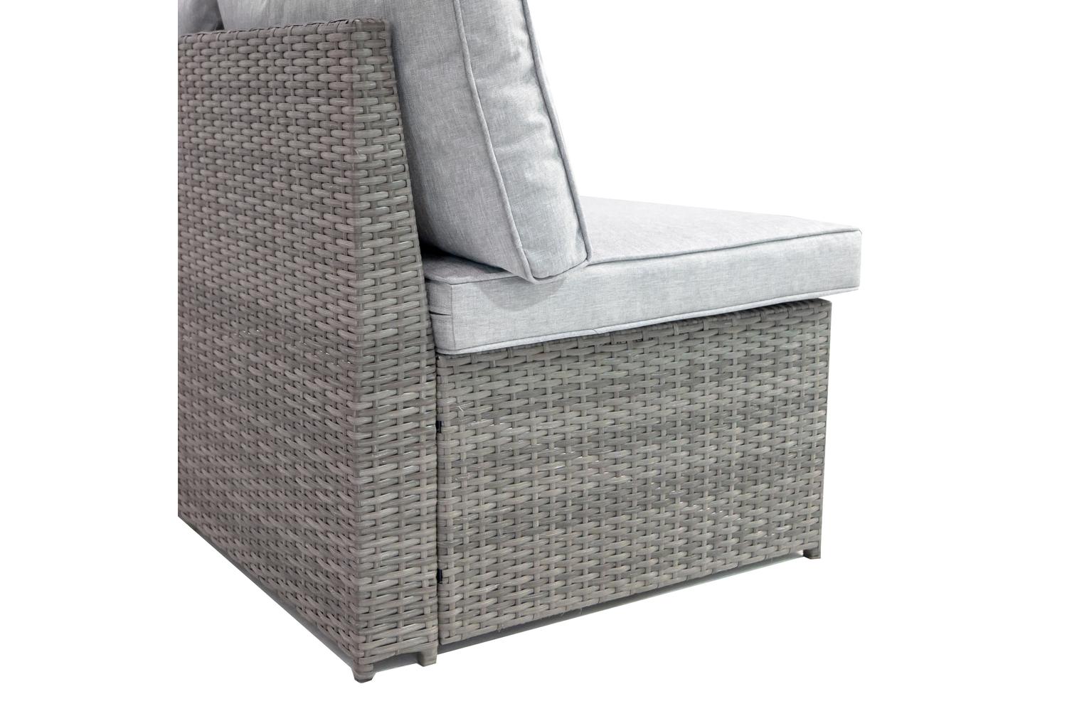 - Covered in comfortable grey padded cushions with removable covers