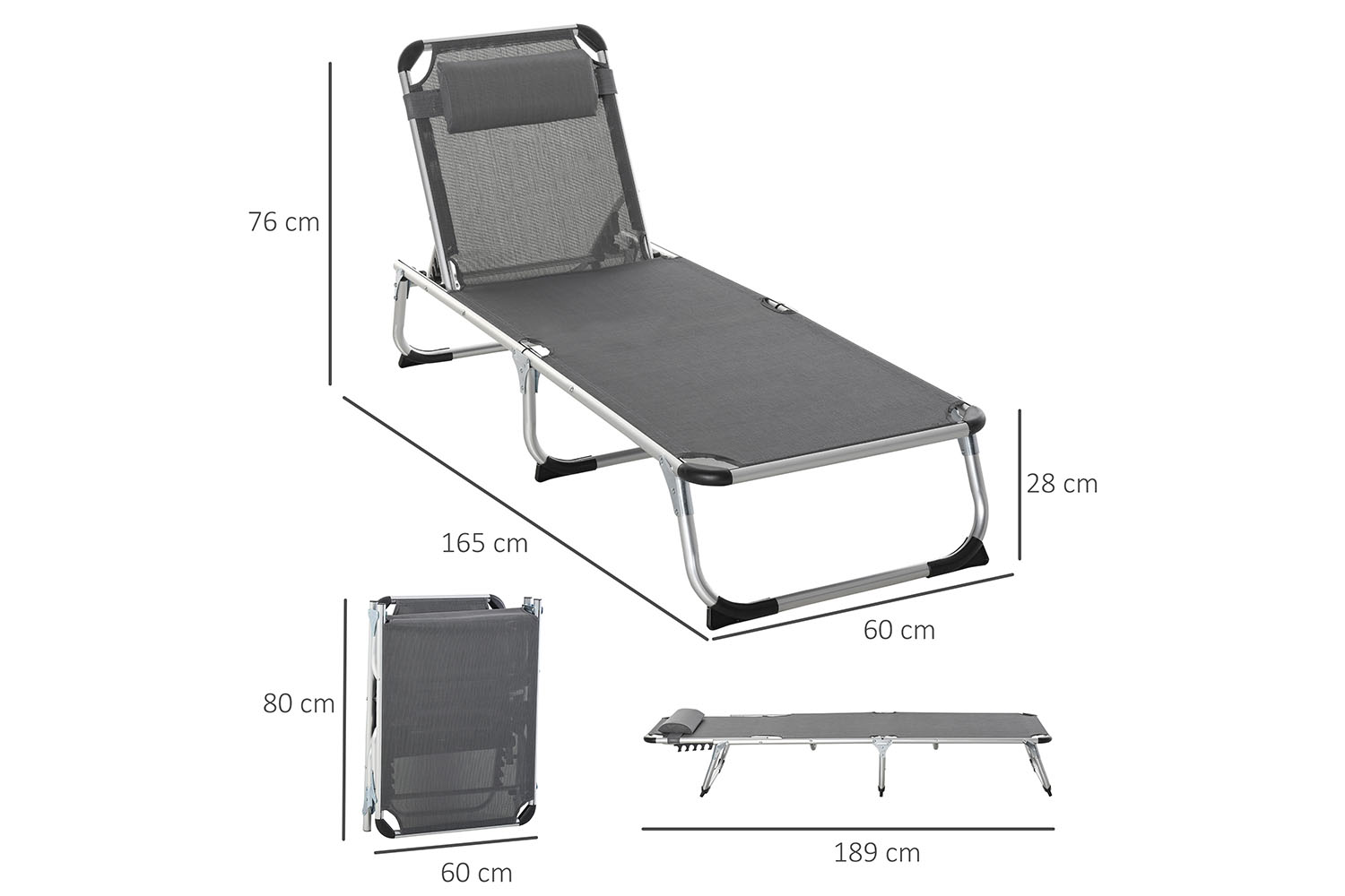 - Overall Dimension: (upright) 170L x 60W x 76H cm, (flat) 189L x 60W x 28H cm