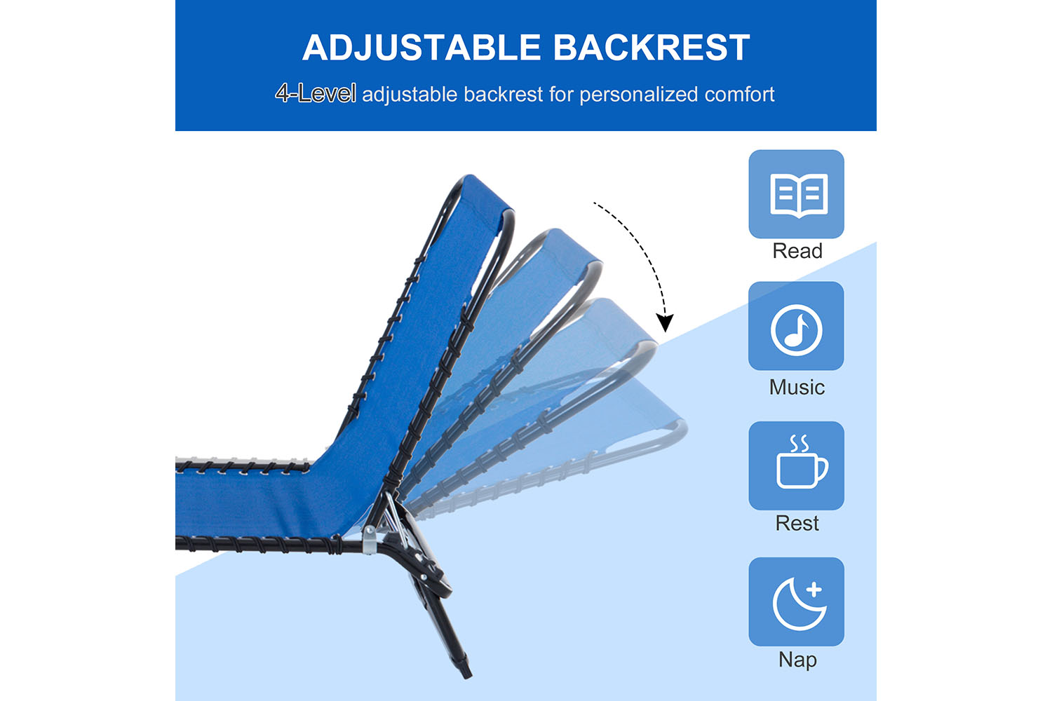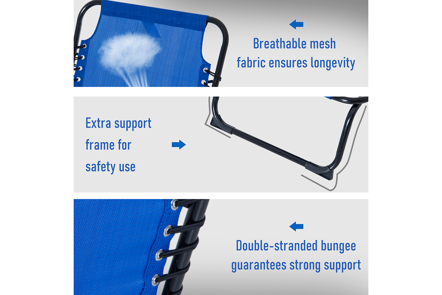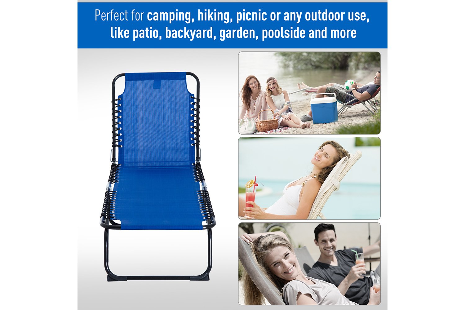 Outsunny 3-positions folding lounger is an ideal choice for you when at the beach, on the patio, near the swimming pool or at the camping ground. You can sit up, recline or lay down with 3 different reclining positions. A comfortable seat with a sturdy frame and its ability to fold up into a small one is easy to transport, you can toss this in your trunk and have a comfy place to rest anywhere.