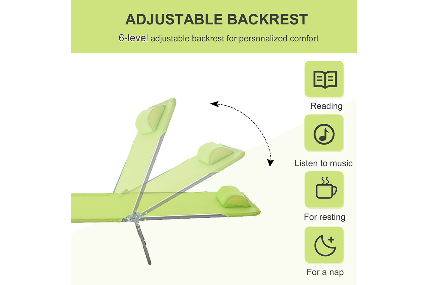 The recliner chairs in an elegant folding design and is not just for garden, balcony and pool, but is also ideal for camping and vacations. Perfect for you to take a nap during hot summer, and also ideal for enjoying outdoor sun bath on the beach, swing pool or anywhere else. The lounger back is multiple adjustable, you can adjust it to any position you like. It designed to give you maximum relaxation.