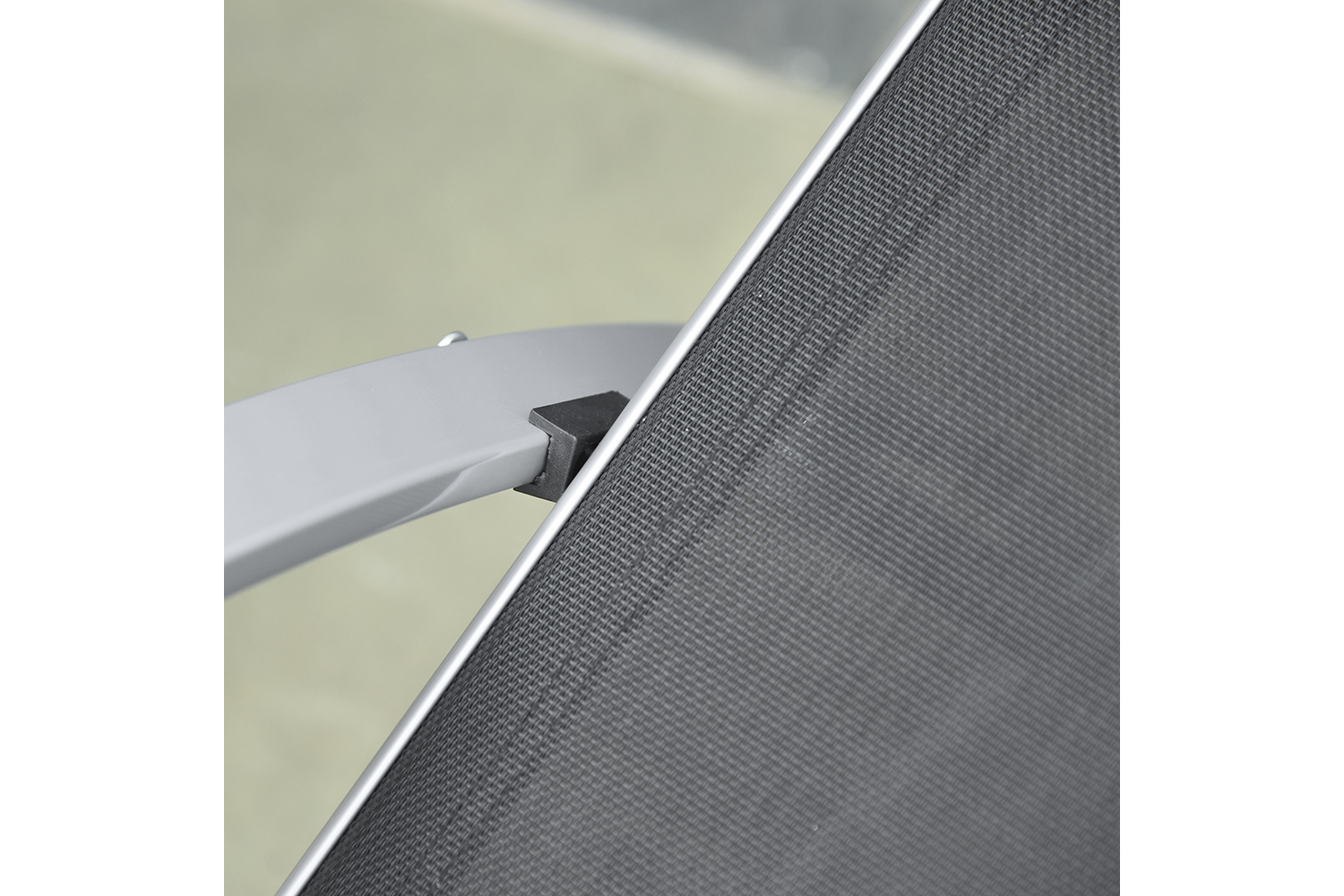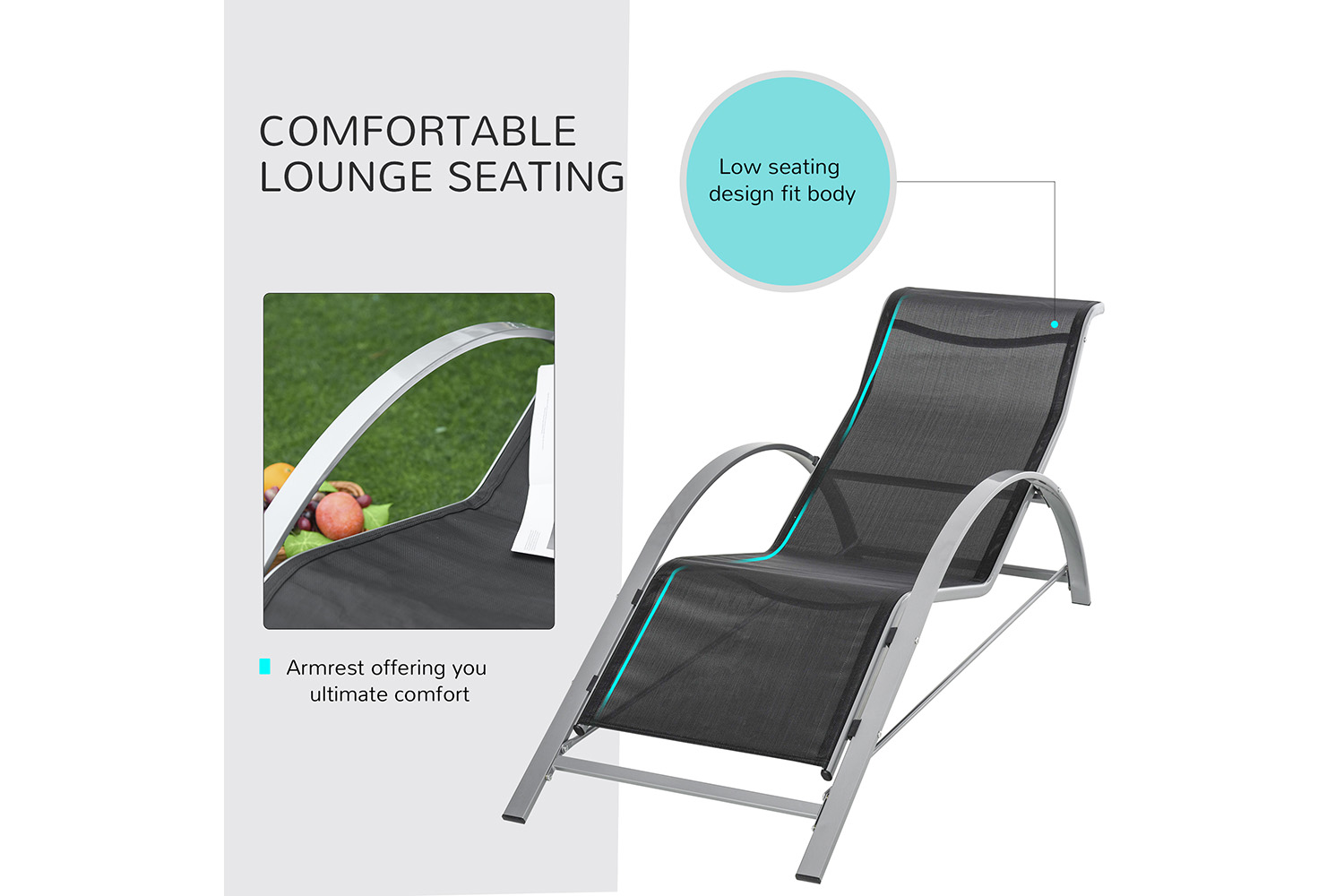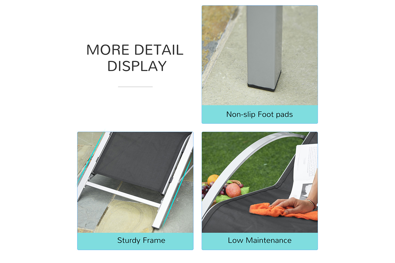 Refresh you outdoor space with this lounging set Outsunny. Using metal for the frame of both chairs and table, the structure is tough and durable so it can be used every day. The chairs are wrapped in breathable mesh for comfort and smoothness on the skin. The table comes with a thick glass top for a safe and secure holding place. Stylish and functional, this set is perfect for patios, gardens, balconies and any other outdoor space. Assembly is required.