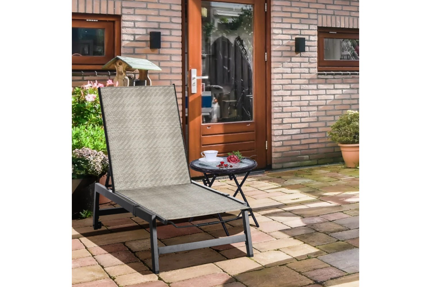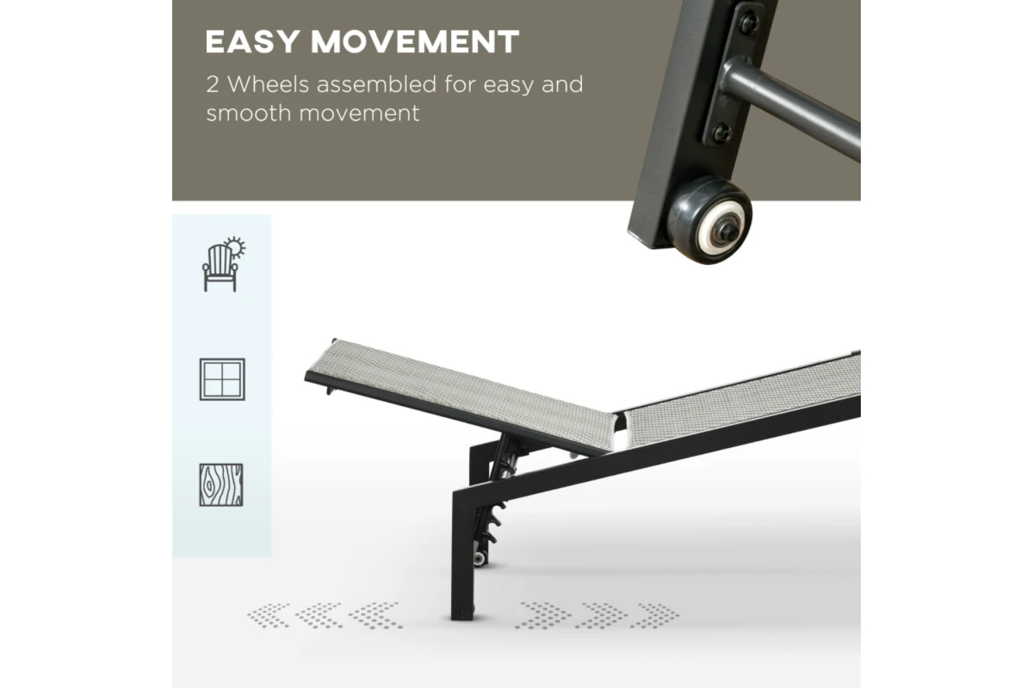 Make it minimal: a no-fuss approach to relaxing in the sun with this Outsunny lounger. Using a steel frame for a strong core, left in its natural state, it's paired with a rattan seat for an outdoor-ready look, wherever you want it. The back can be changed between five different positions - whether completely flat or at an angle, you can relax in a position you want. Two wheels to complete - move it around easily.
