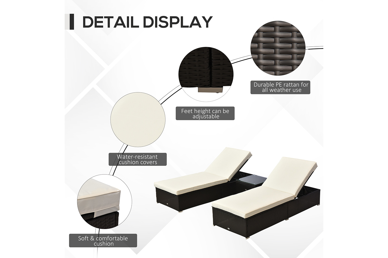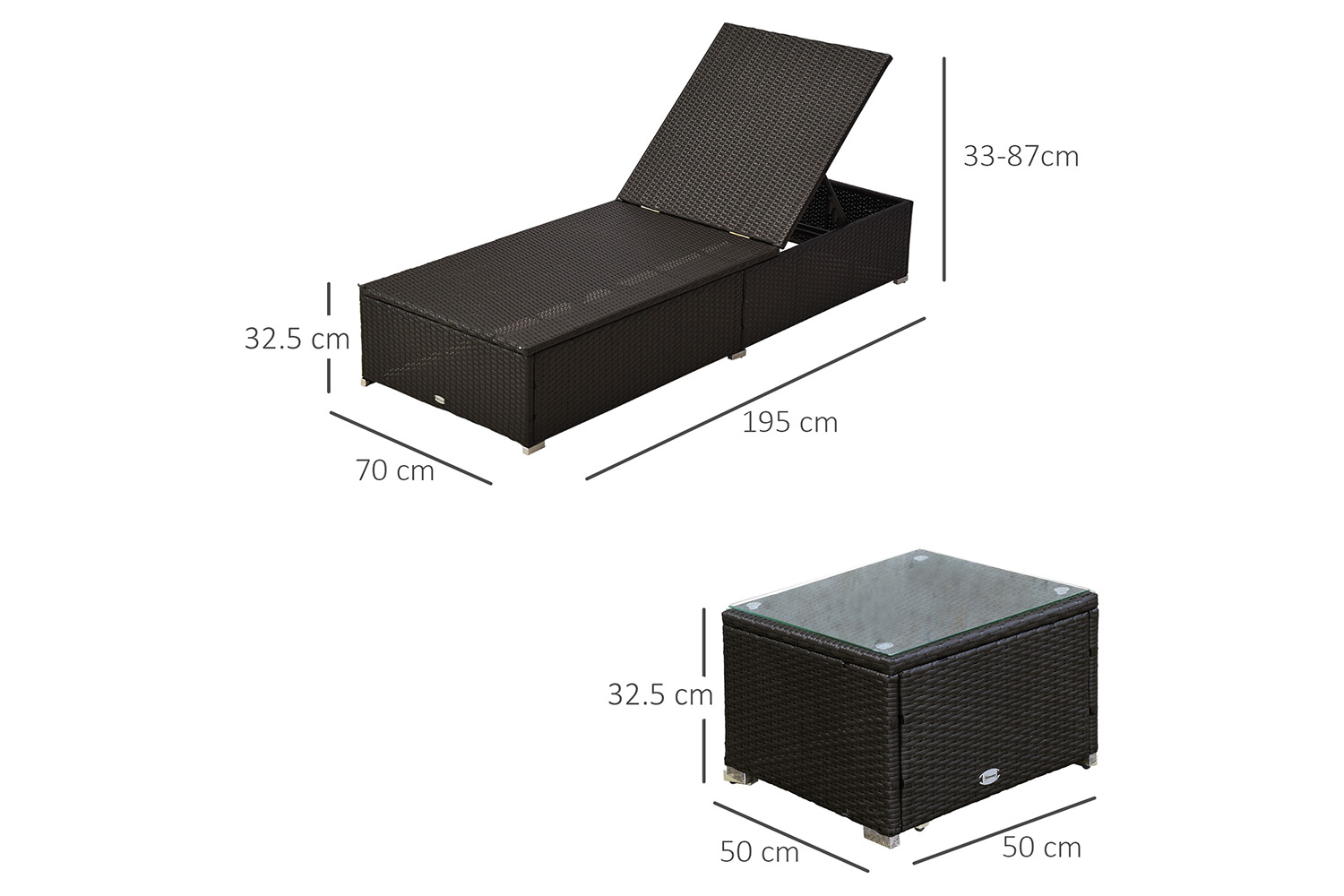 This rattan lounger recliner set from Outsunny is an ideal addition to enjoy the summers. Made using metal frame and PE rattan, in sturdy construction which will last for years to come. It comes with 8 cm cushions filled with a vertical cotton to offer superior comfort. The table is topped with a 5 cm toughened tempered glass. Enjoy your outdoors summer to the fullest with this lounger set.