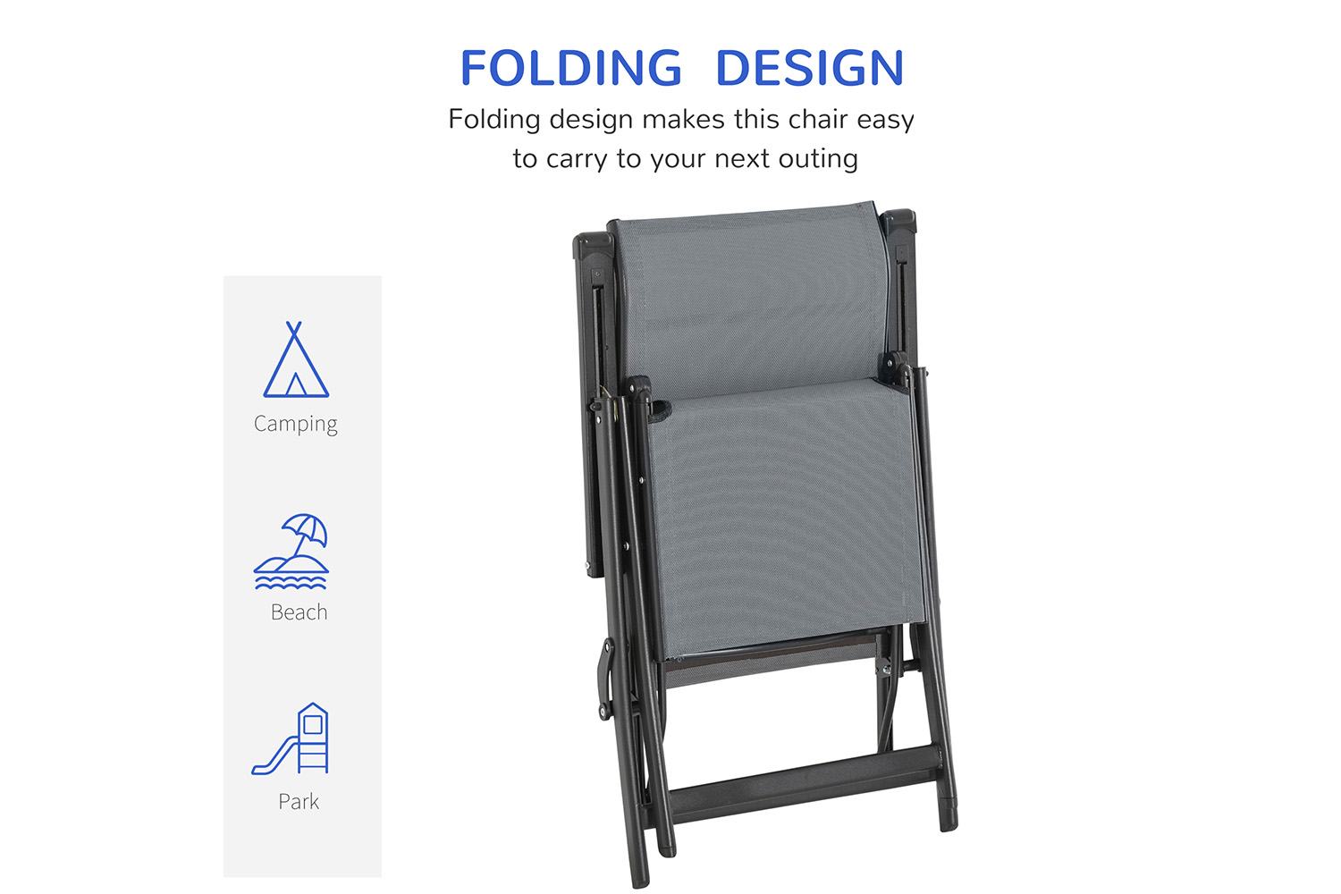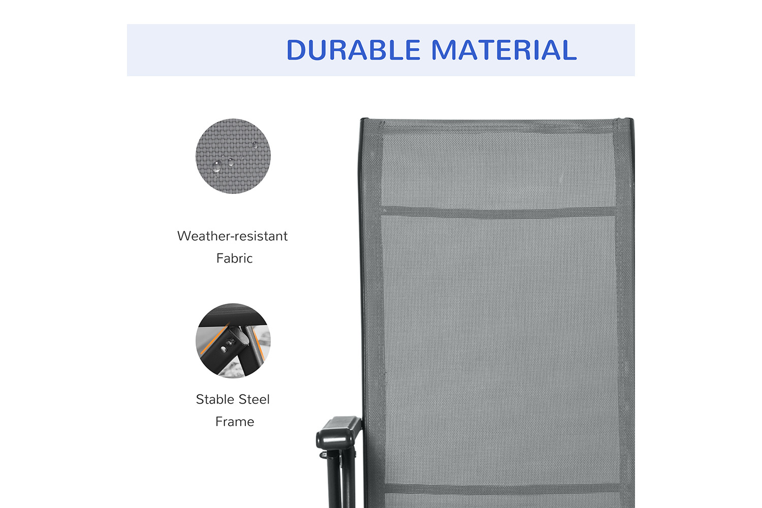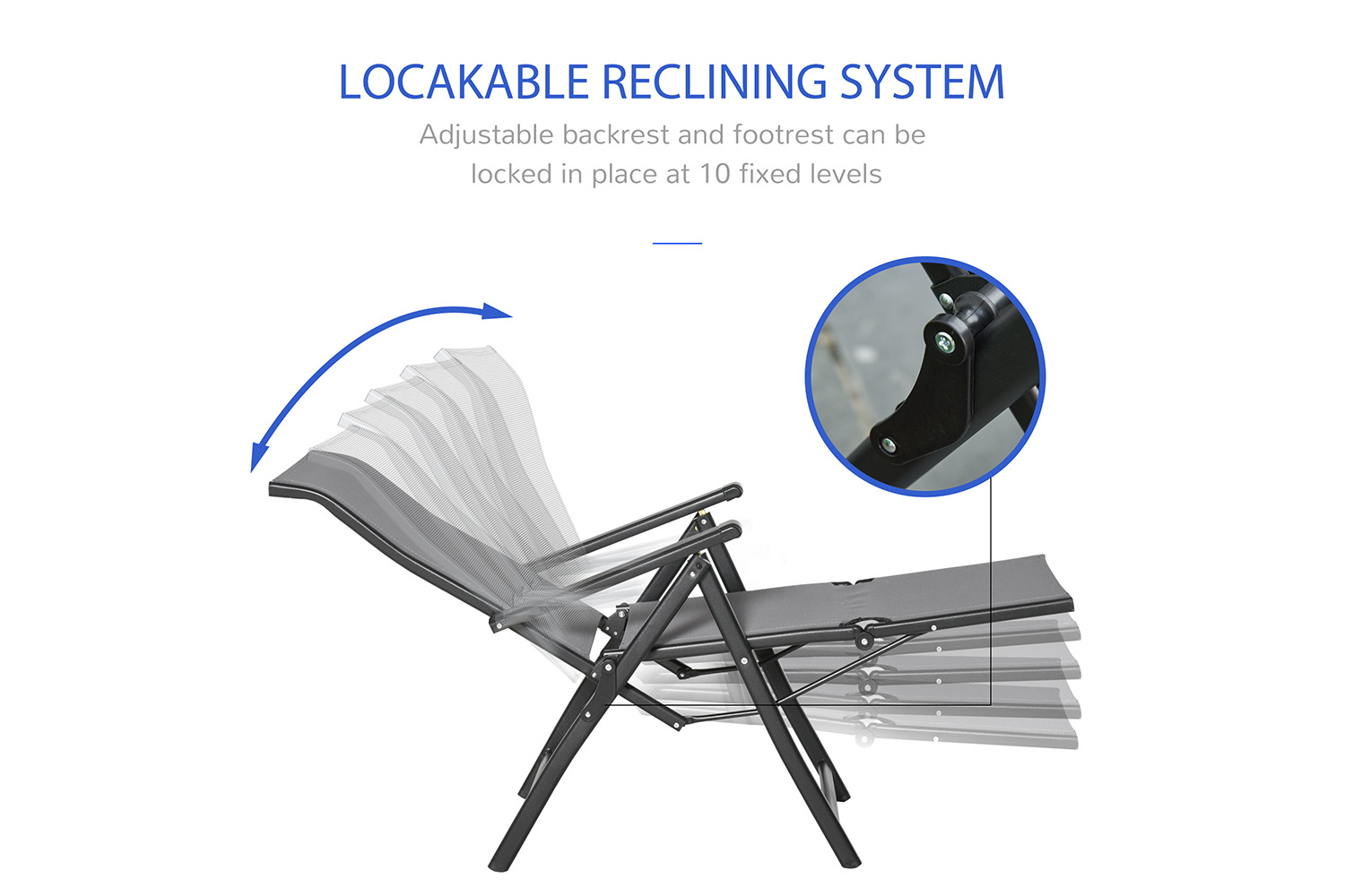 Let the day's stress drift away with this reclining chair by Outsunny! This recliner adjusts to 10 different positions for the ultimate relaxtion. Equipped with weather-resistant Textiline fabric for lasting quality. Mesh back ensures high breathability and comfort. Foldable design ensure easy transport. This multi-functional chair is suitable for both outdoor patio, camping and indoor home napping.