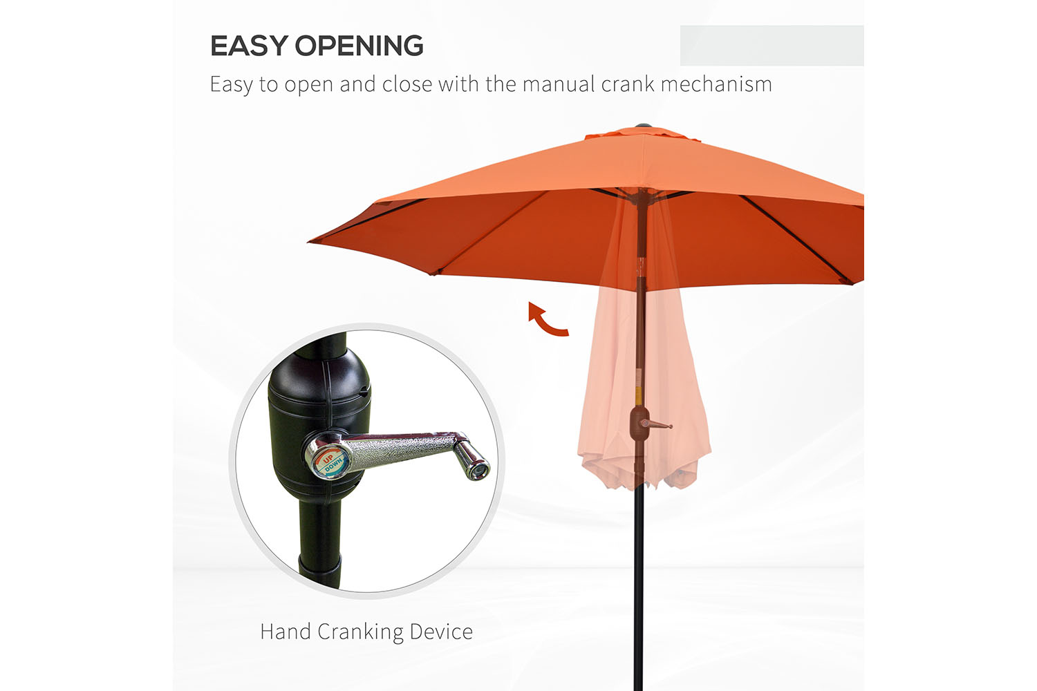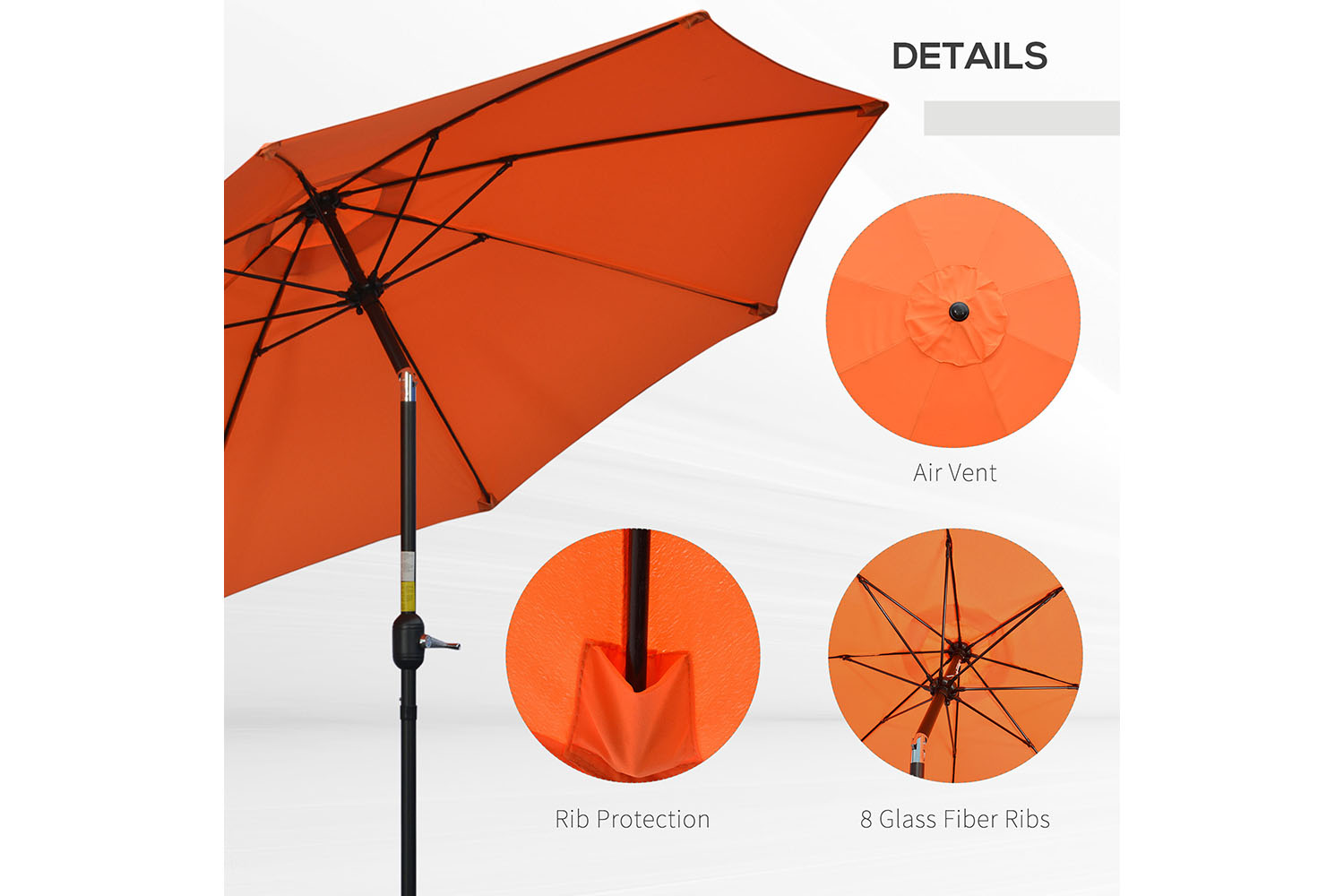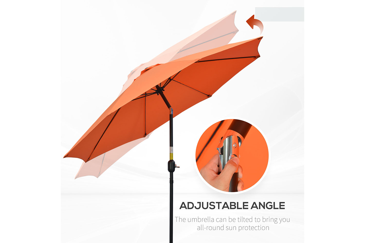 Summer shades the classic way - this Outsunny sun parasol. An aluminium frame makes the core structure strong, with 8 additional ribs connecting to the canopy for extra support. The Φ2.63m canopy protects you from direct sunlight and light showers - the outdoor parasol's large size creates cover for you and five other guests. The canopy can be easily tilted to keep you protected in different ways. And to complete, pair with an Outsunny base, heavier than 25kg.