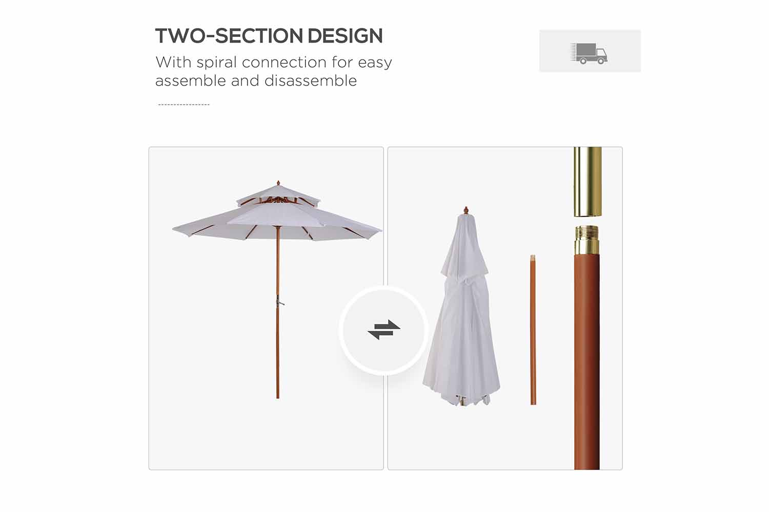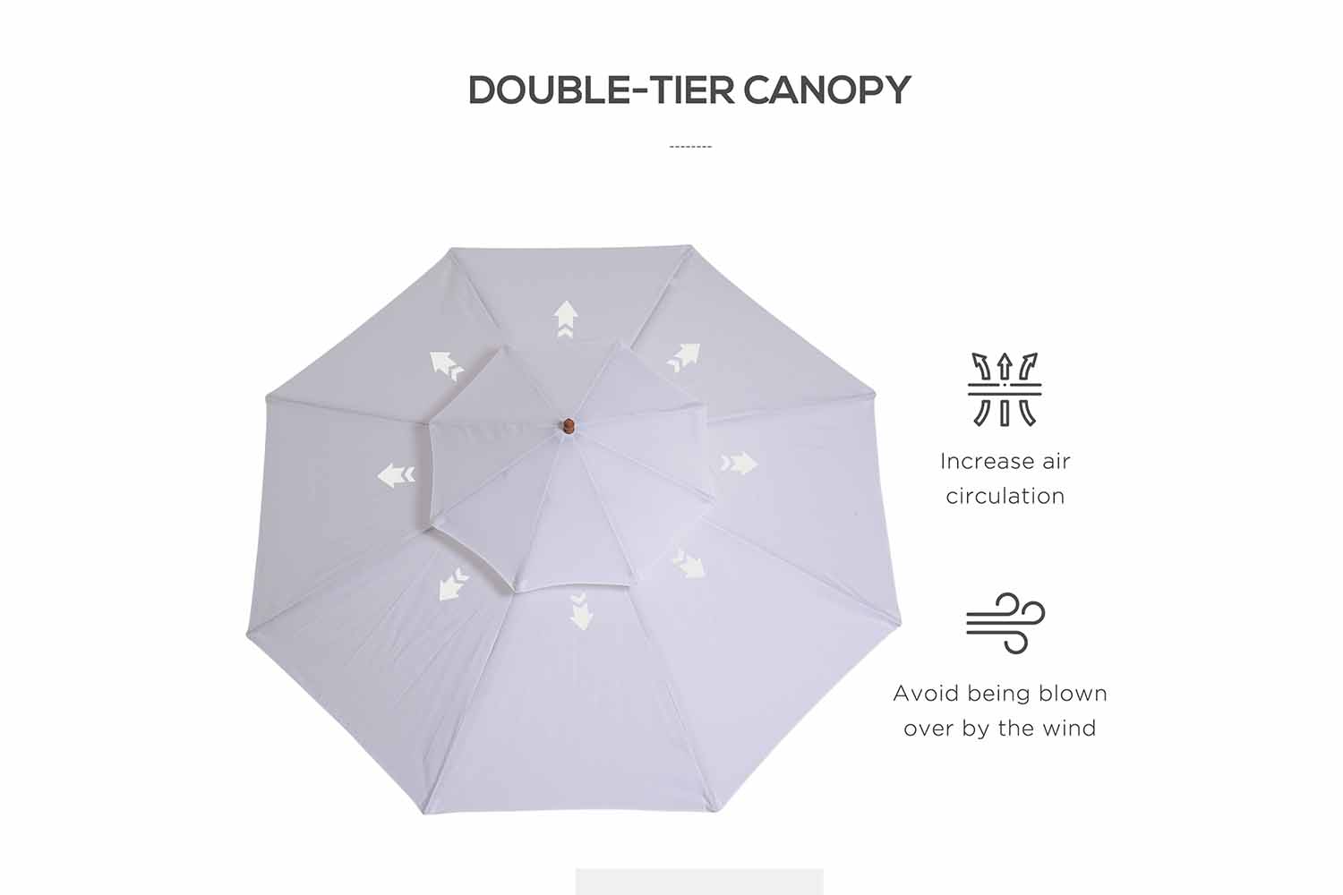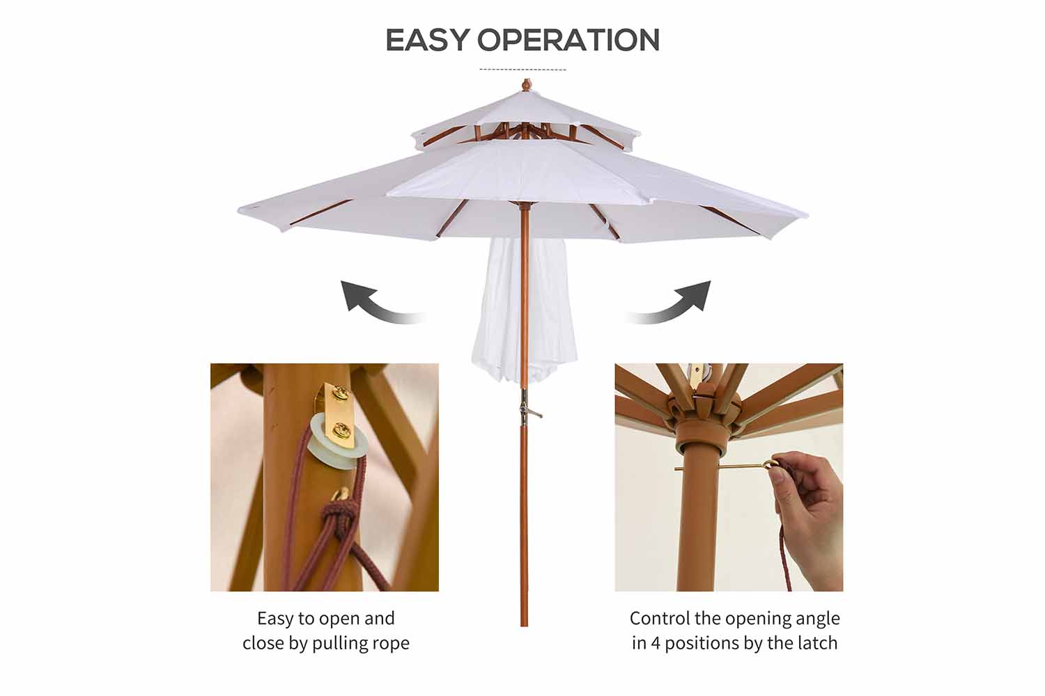 Live the elegant way this season and beyond - choose Outsunny sunshades for garden. Using poplar wood for the main structure, the warm brown colour works in hand with the cream top, creating a beautiful look that is nicer on the eye than standard metal. The wood is tough so it can be used all day long, with eight bamboo ribs connecting the canopy to the pole for extra strength. Crafted into a two-tier design that lets air in and out, helping to reduce any wind-build up underneath.