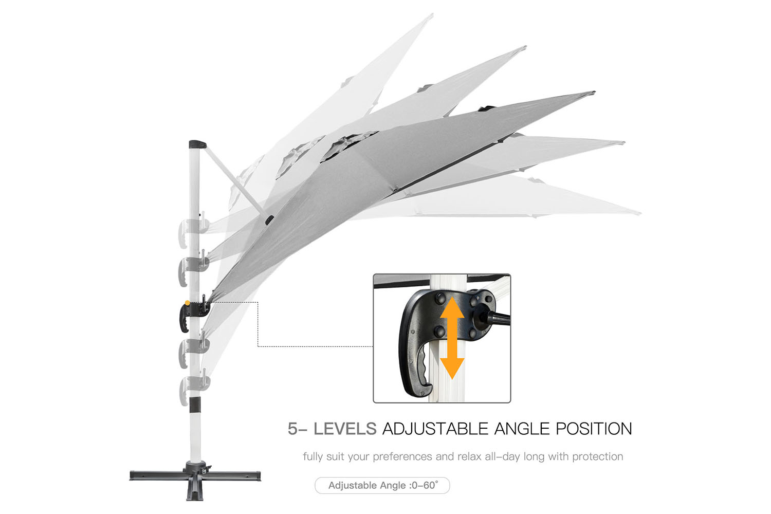 - A vented canopy helps the outdoor parasol stay stable against the wind