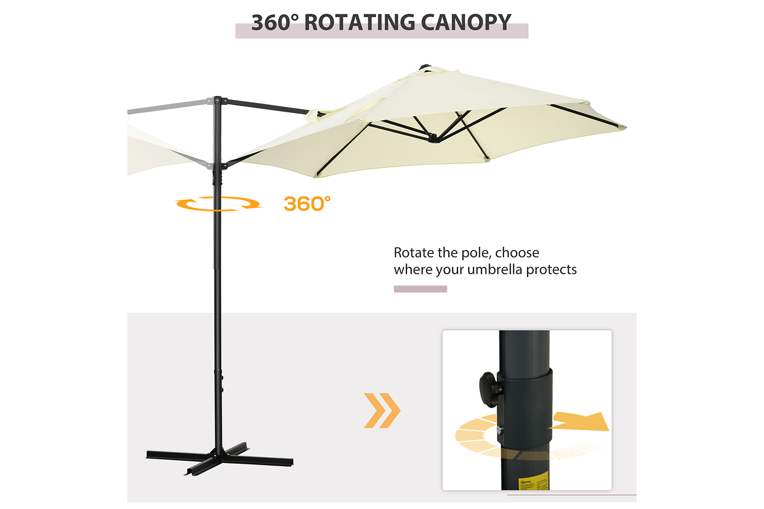 Need shade but nowhere to mount an umbrella? Use a cantilever for your outdoor couch, pool chairs, and more. Say goodbye to sunburns this summer with Outsunny. This offset cantilever umbrella offers you ample shade from sunlight at an angle you control. Swivel the umbrella stand to shade anywhere across a full 360 degrees. Get shade outside and enjoy eating, conversations, and having fun with friends without going indoors.