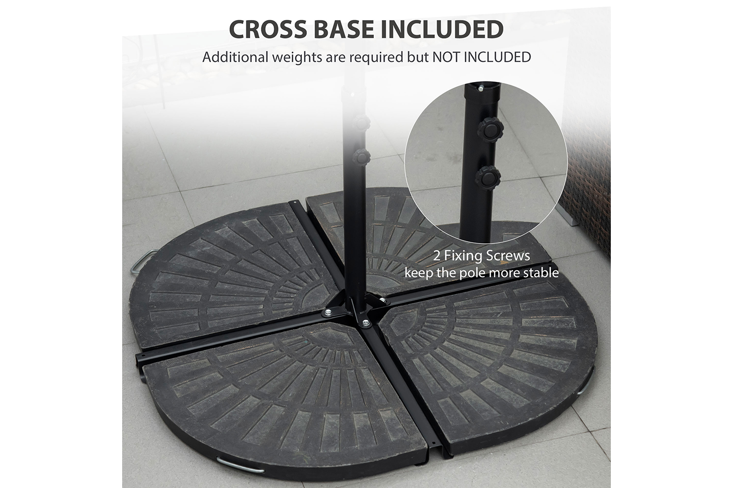 - Required 60 kg weight not included. Usable Outsunny Counterweight SKUs: 01-0221, 84D-061, please contact us for product links.